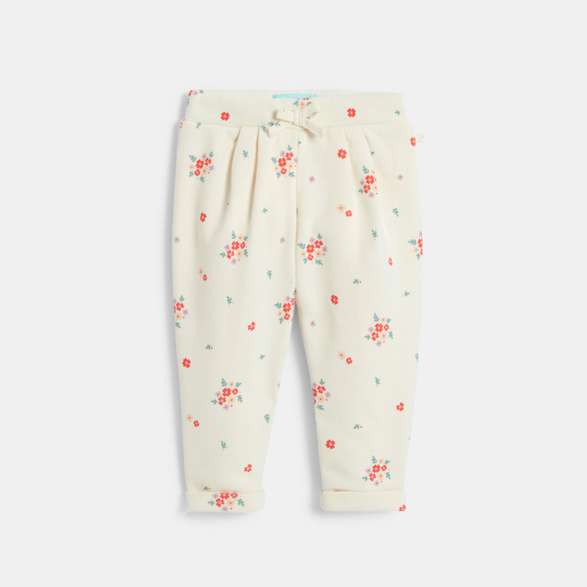Description Un pantalon tout confort en molleton doux pour bouger toute la journée ! Des détails qui plaisent aux petites : ceinture plate à pinces et noeud fantaisie. Print floral all-over. Taille élastiquée ajustable et bas de jambe à revers piqué.
