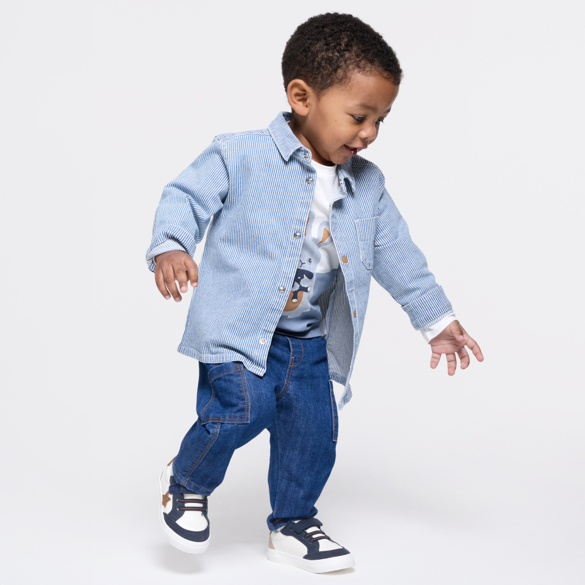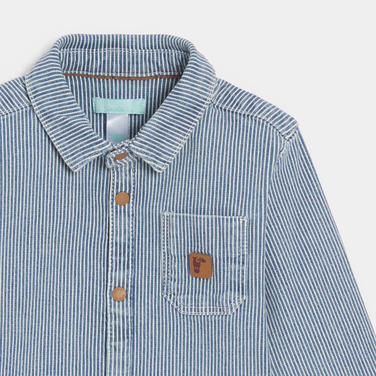 Description Parfaite alternative au blouson dès les beaux jours, cette surchemise à la coupe droite s'adapte à toutes les morphologies. On aime sa fine rayure et sa fermeture par pressions pour habiller facilement les garçons.