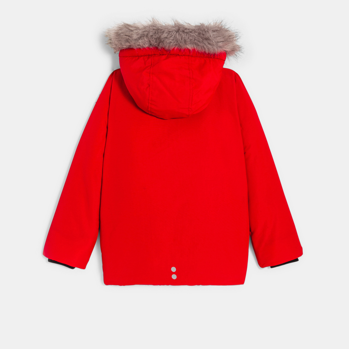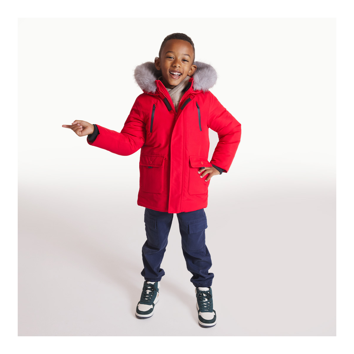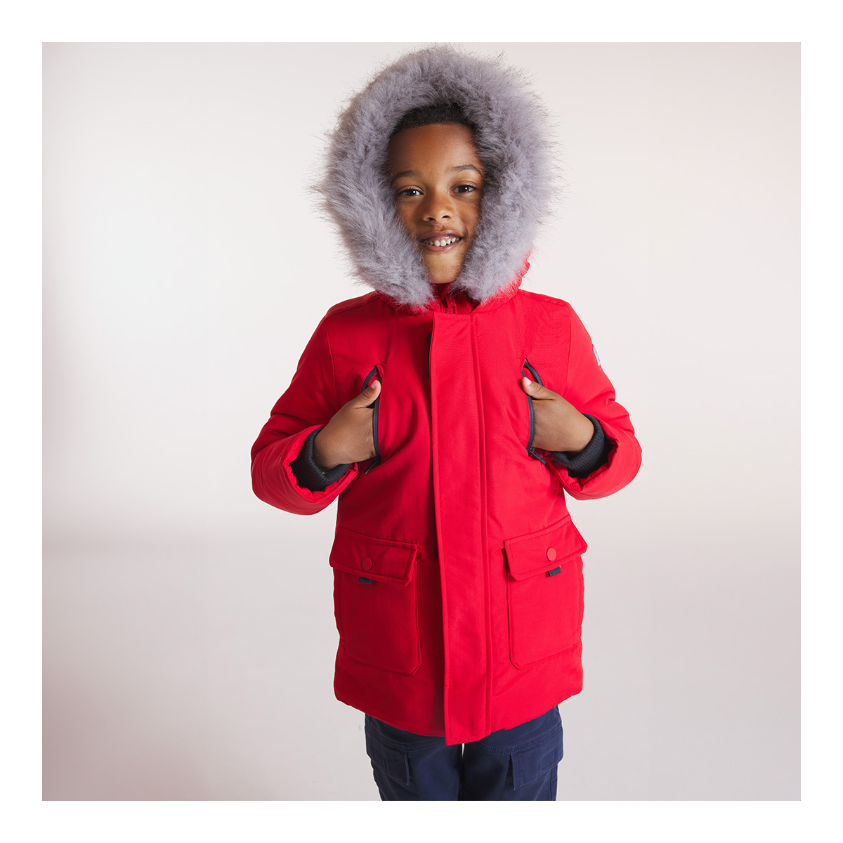Unie. Bien chaude. Très pratique. Cette parka déperlante est prête pour affronter le froid la pluie le vent de l'Automne-Hiver. La capuche est enrichie d'un bord en fausse fourrure. Coupe droite. Ouverture par zip caché sous patte scratchée. 4 poches. Manches longues poignets côtelés. Accroche portemanteau et étiquette d'identité à l'intérieur.