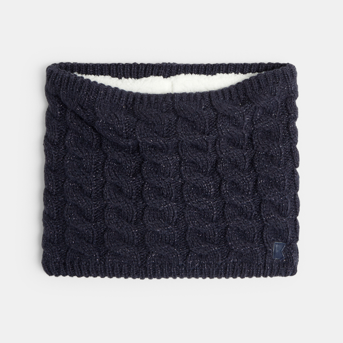 Ce tour de cou torsadé fait partie des succès annoncé ! Les torsades fantaisie captent la lumière de l'hiver grâce à quelques reflets irisés. L'intérieur est doublé en moumoute Sherpa pour plus de chaleur et confort. Bords côtelés. Logo en détail. Belle idée de cadeau.