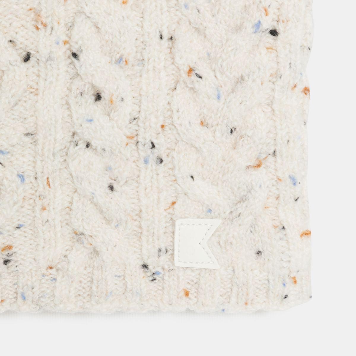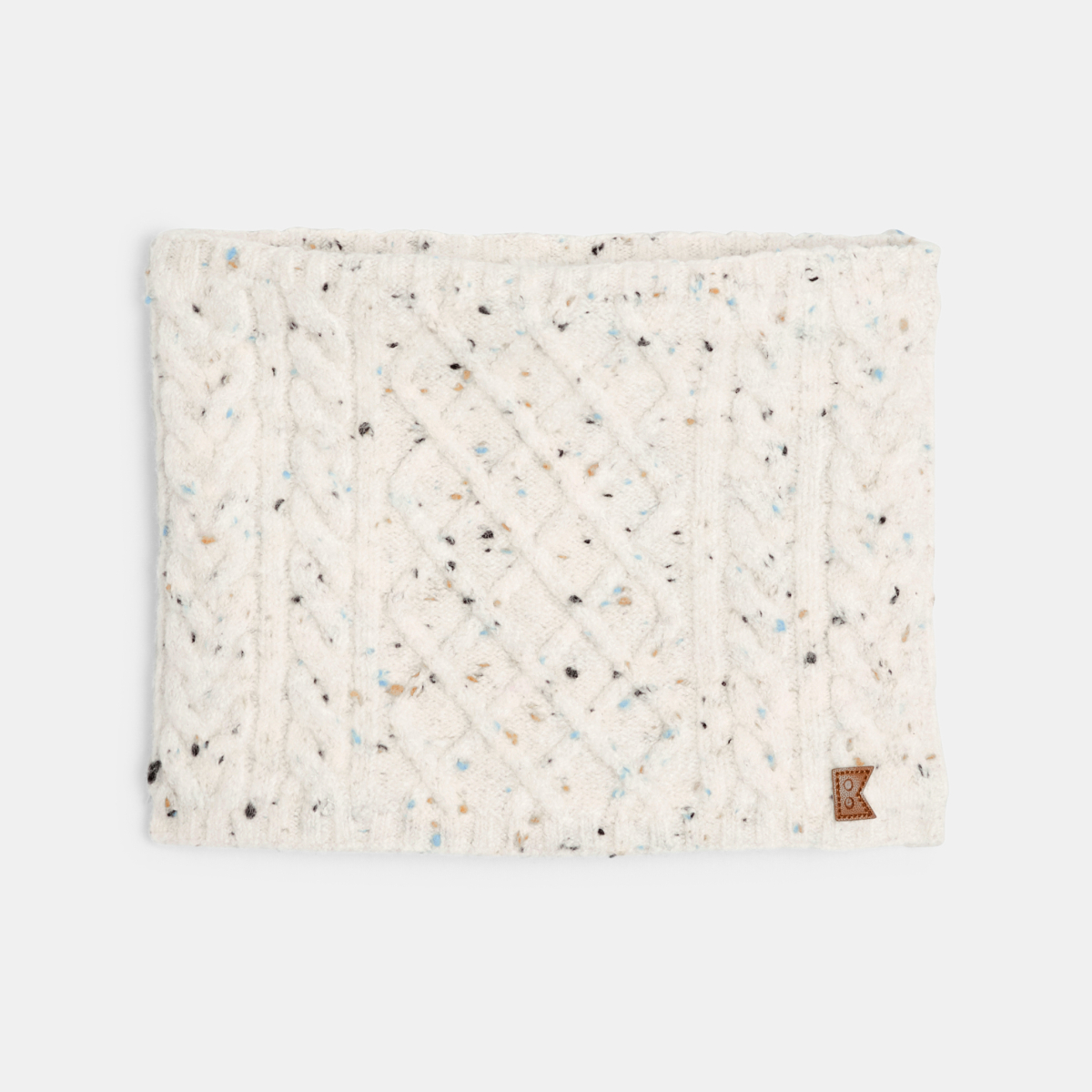 Ville. Mer. Montagne. Avec ce tour de cou doux et chaud, la vie au grand air est un vrai bonheur durant tout l'automne-hiver ! Maille torsadée. Intérieur en polaire Sherpa. Bords-côtes. Vignette-logo en détail. Idée-cadeau.