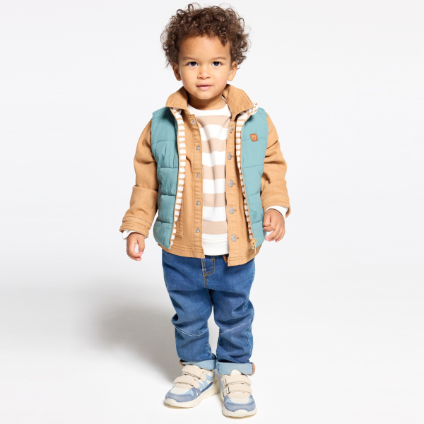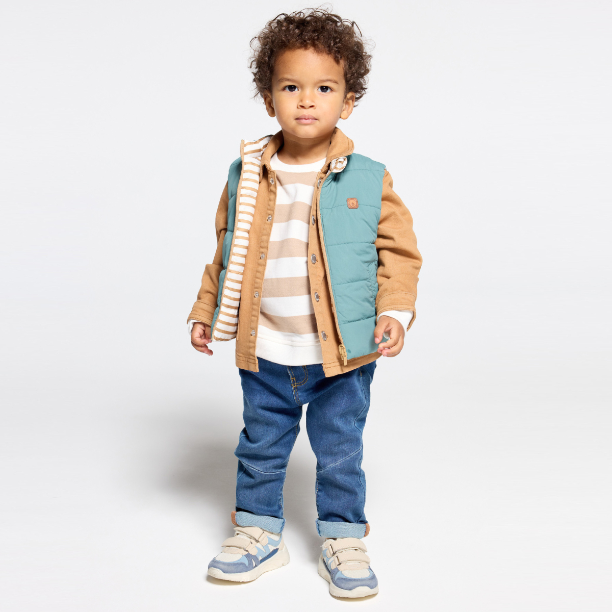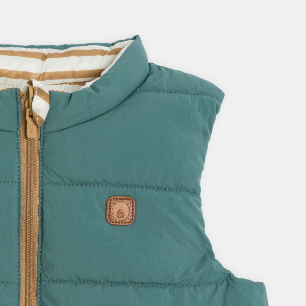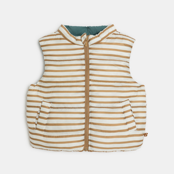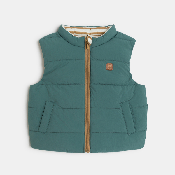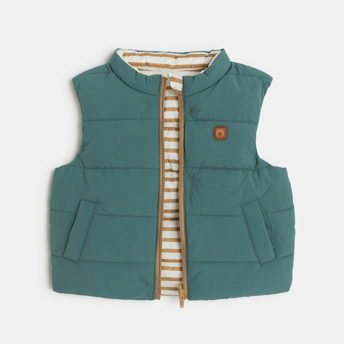 A porter seule ou sous un manteau pour deux fois plus de chaleur ! Cette doudoune sans manches est réversible pour deux fois plus de style, les garçons ont le choix : un côté uni vert et un côté rayé. Fermeture zippée pour l'enfiler rapidement.