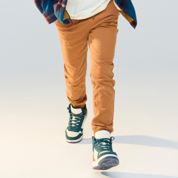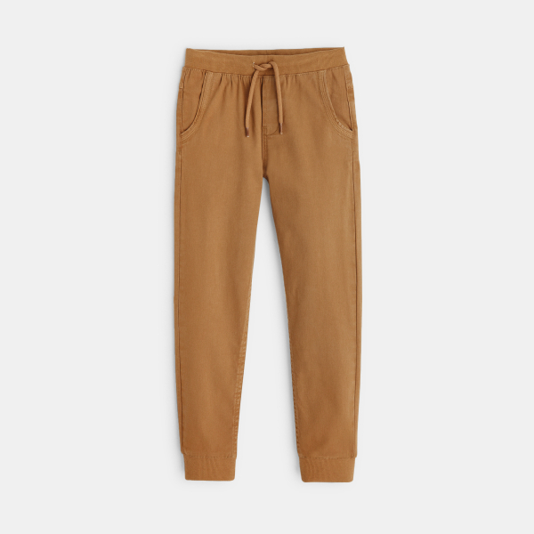 Belle liberté de mouvement ! Sur ce pantalon 4 poches en toile stretch tout confort, la coupe carrot ressemble à un jogging. La taille côtelée se resserre via un cordon à nouer et un élastique boutonné à l'intérieur.
