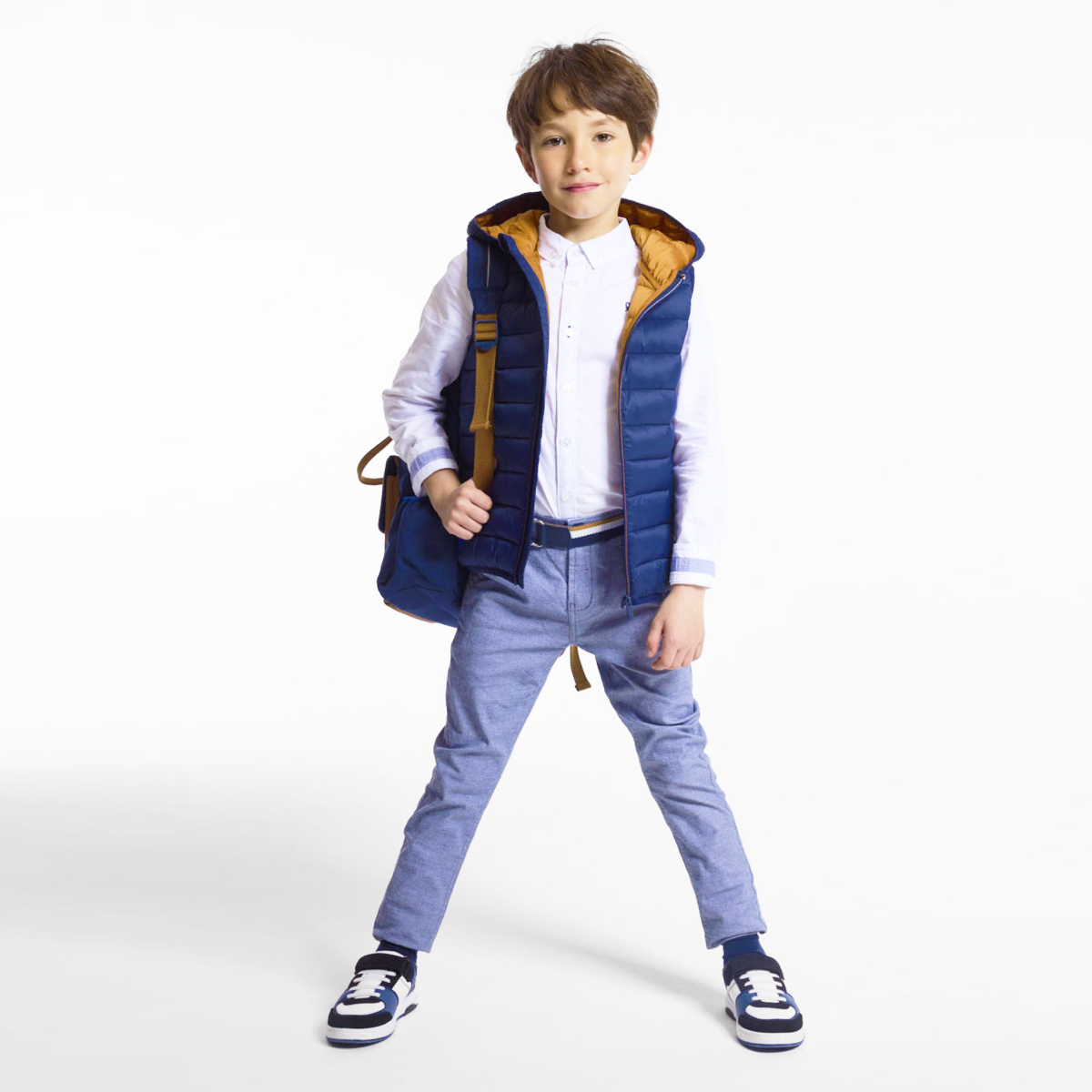 Dans un bon vestiaire, les garçons comptent beaucoup sur ce pantalon chino en toile coupe slim, animé d'une ceinture sangle rayée (ajustable et amovible) et de poches boutonnées devant. Cet essentiel de la saison est facile à coordonner et s'adapte à tous les styles.