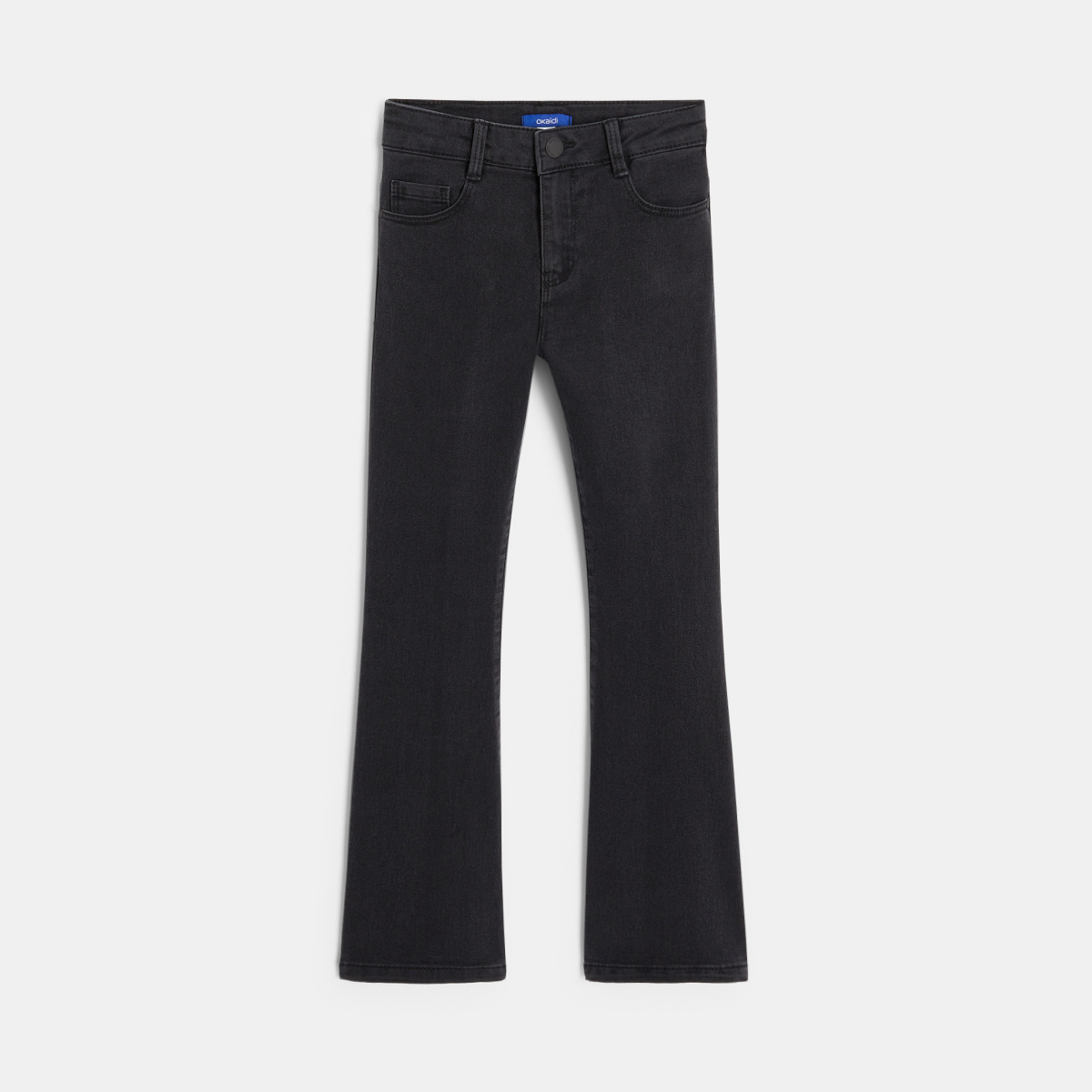 Description Esprit hippie. Le jean évasé en bas est une valeur sûre, et les filles l'adorent. On l'associe à une blouse unie, une chemise fleurie ou un sweat par exemple. Passants. Ceinture ruban à nouer (amovible). Ouverture par bouton clou et zip métal. 5 poches. Surpiqûres contrastées.