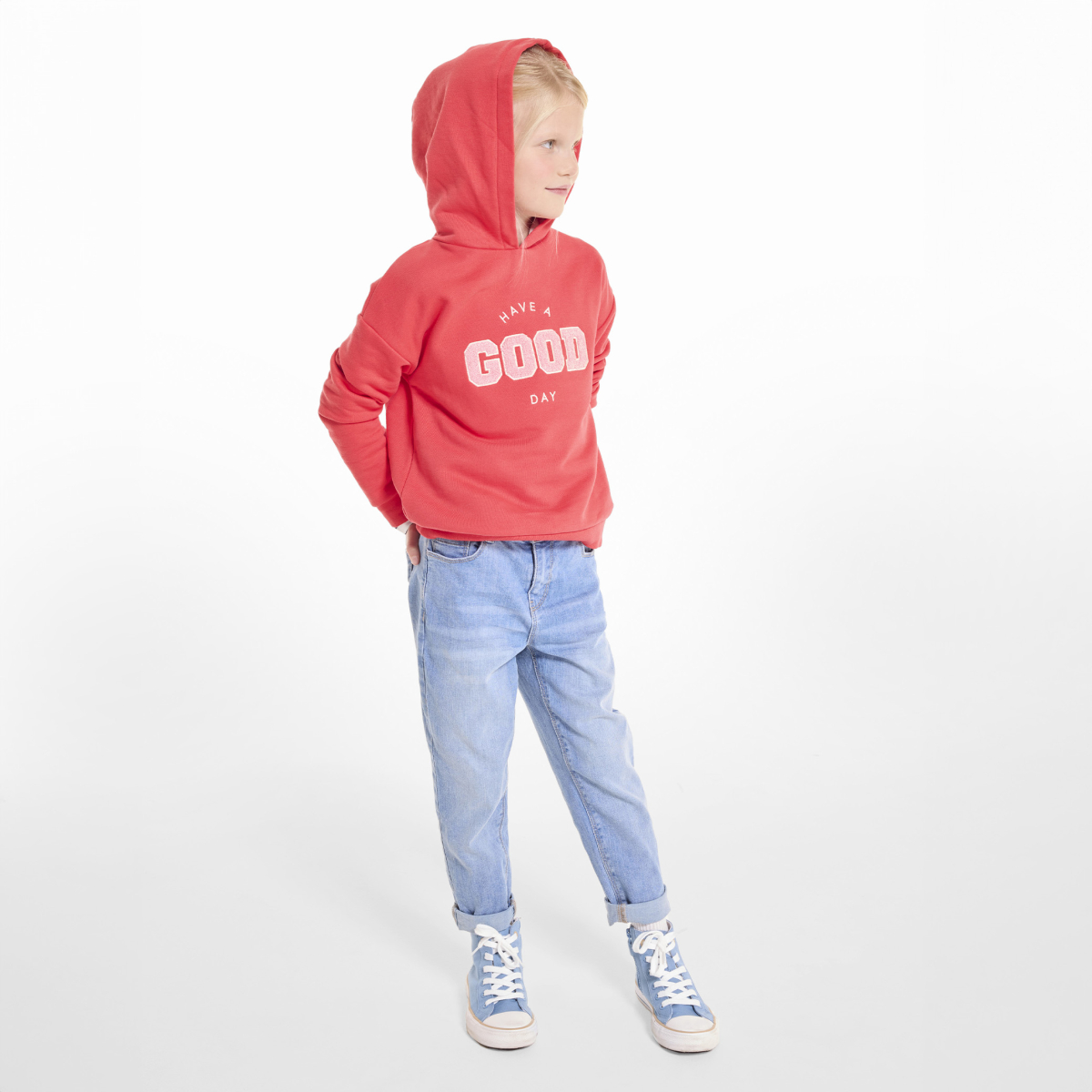 Jean droit délavé bleu fille