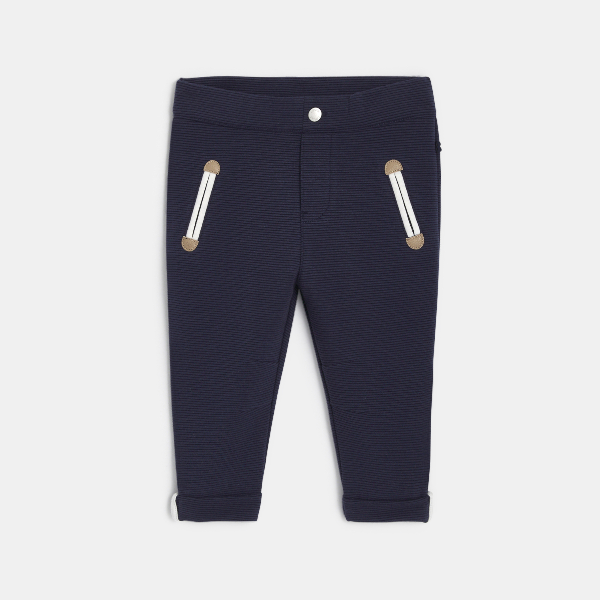 Pantalon enfilable maille fantaisie côtelée bleu marine bébé garçon