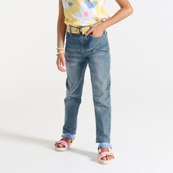 Look cool. La ceinture brodée apporte une note folk à ce jean boyfriend délavé. On peut aussi le porter sans pour changer de style. Denim doux et extensible délavage accentué par endroit. 5 poches. Coutures contrastées.