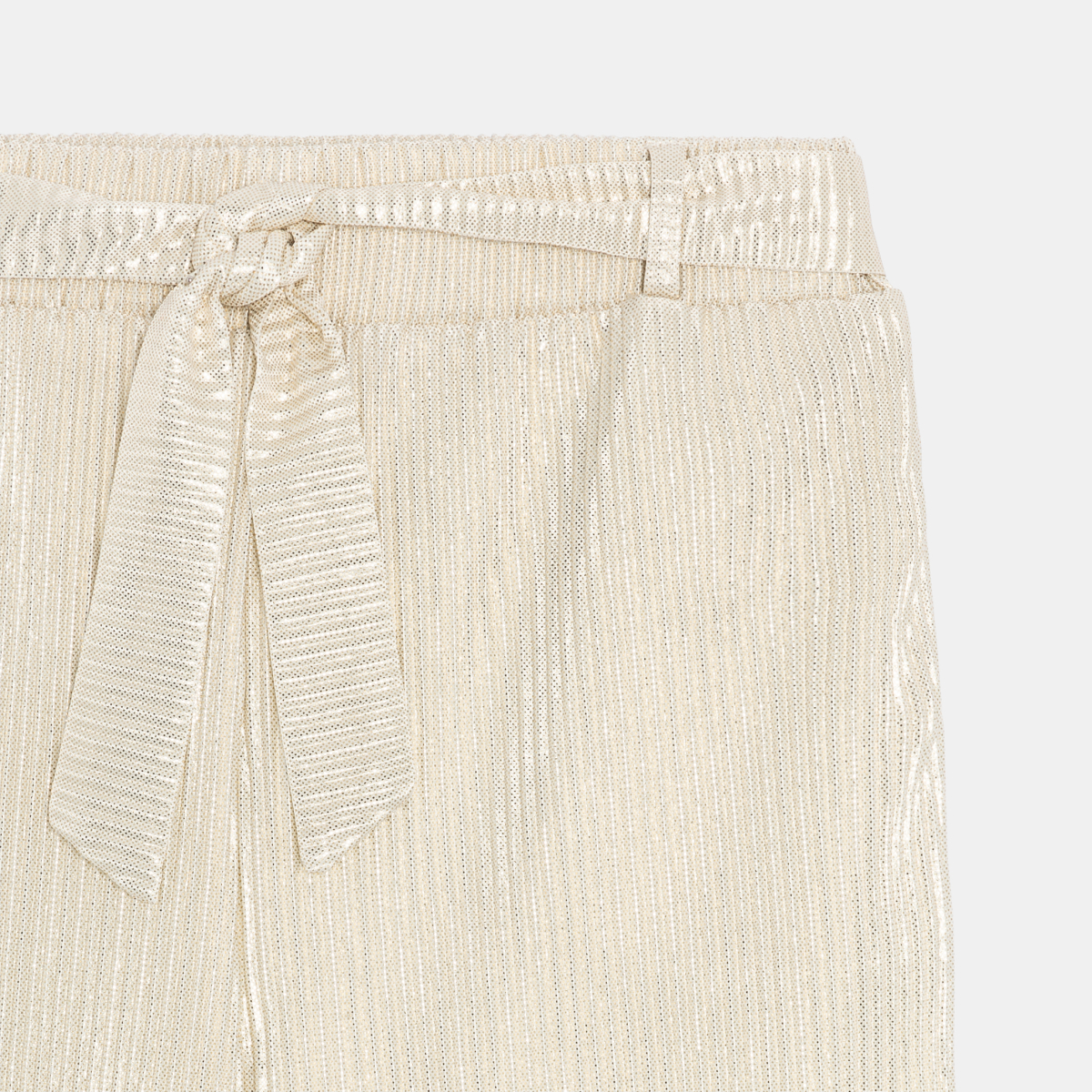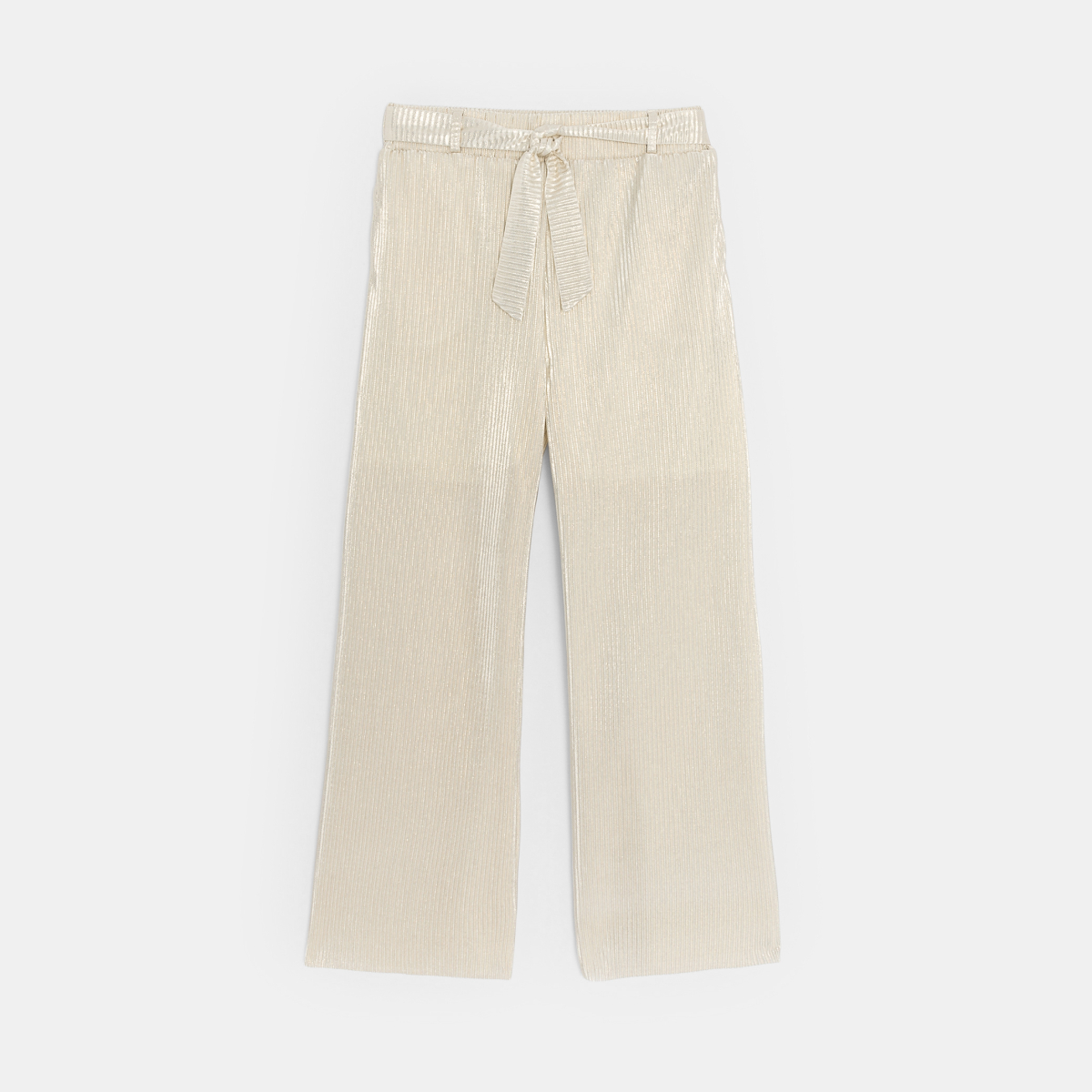 Quel effet ! Pour fêter un événement danser entre copines ou parader en beauté... les filles optent tout de suite pour ce pantalon large en maille côtelée irisée ! Taille élastiquée. Ceinture à nouer (amovible). 2 poches. Jambes larges. Doublure.