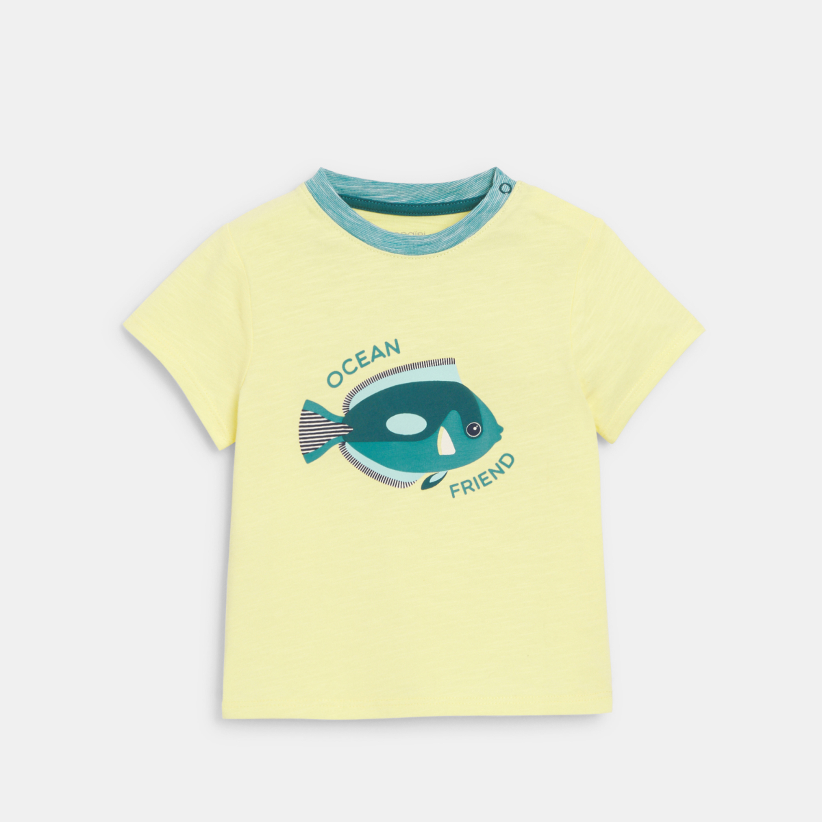 Les petits fans de nature adorent cet ensemble aux couleurs de l'océan illustré d'un poisson ! Avec ce tee-shirt manches courtes assorti au short en maille fantaisie les garçons passent l'été entourés de douceur et de confort. Taille élastiquée.