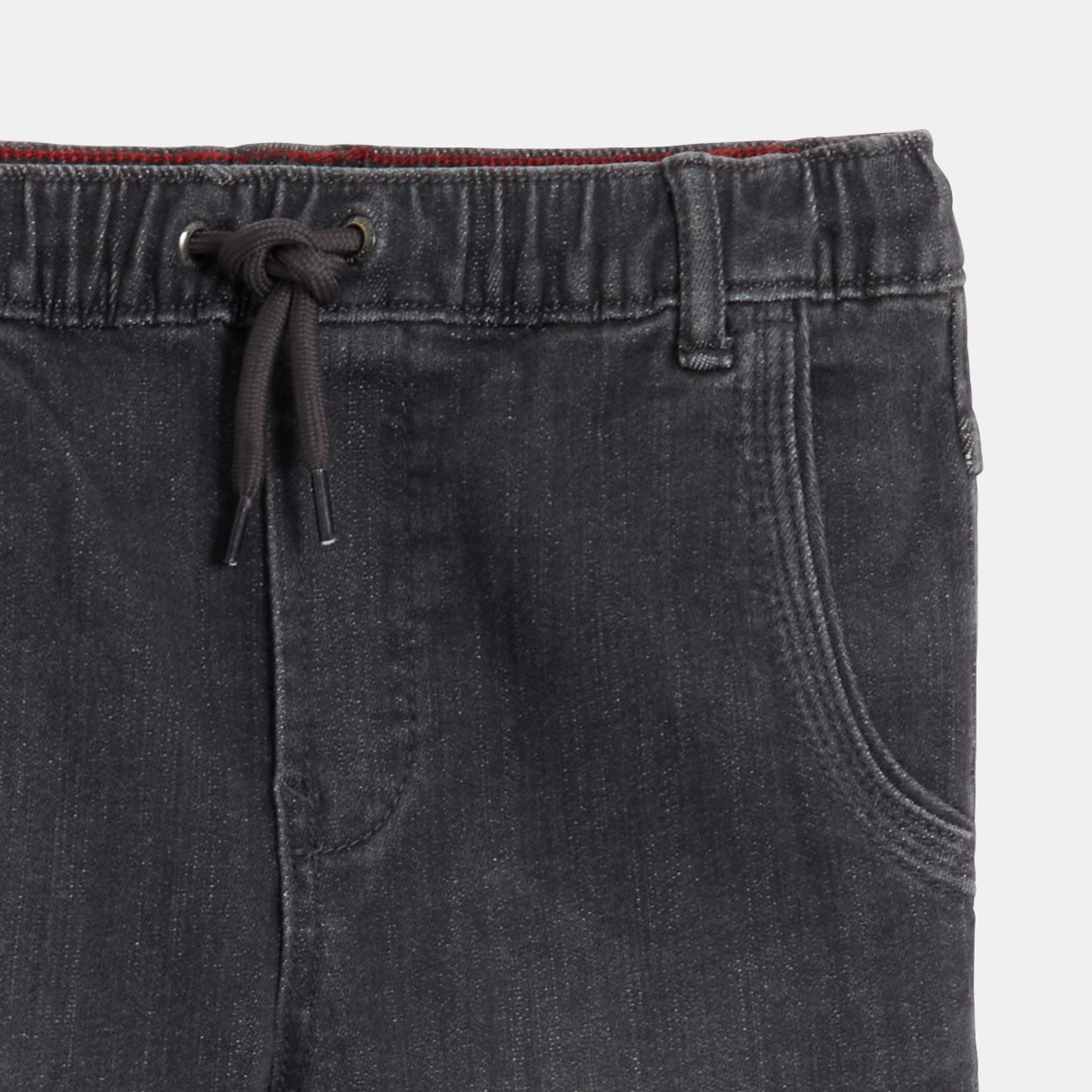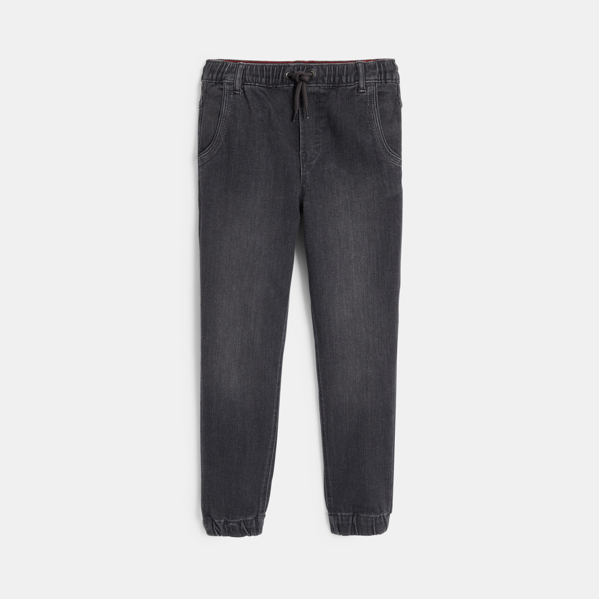 Avis de changement pour le jean slim des garçons : ici, il est élastiqué à la taille et sur les bas de jambes. Denim ultra-résistant, confort et délavé. Taille élastiquée ajustable, cordon à nouer, œillets métal. Coutures contrastées.