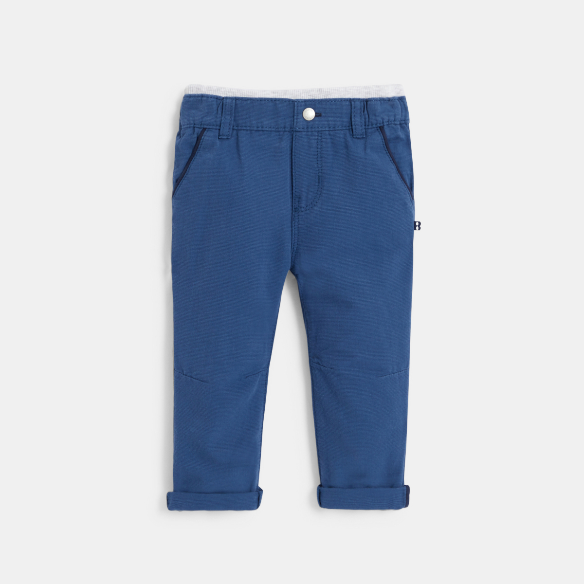 Pantalon coton fantaisie micro rayures bleu bébé garçon