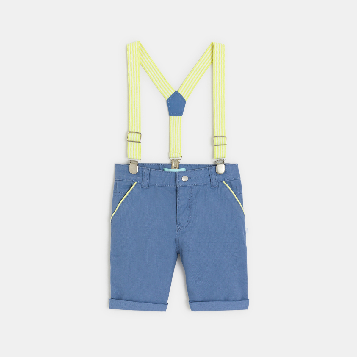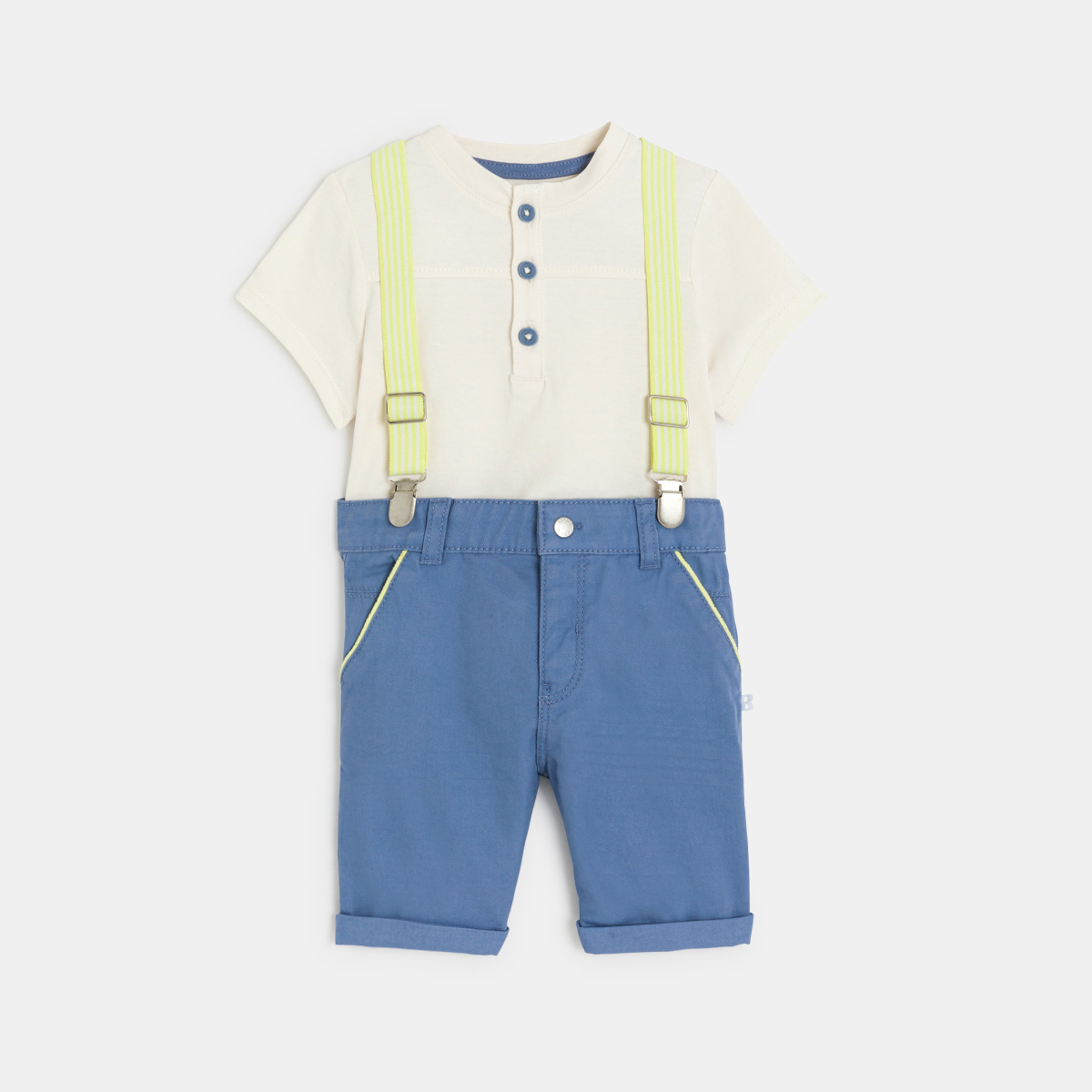 Bermuda à bretelles et t-shirt bleu bébé garçon