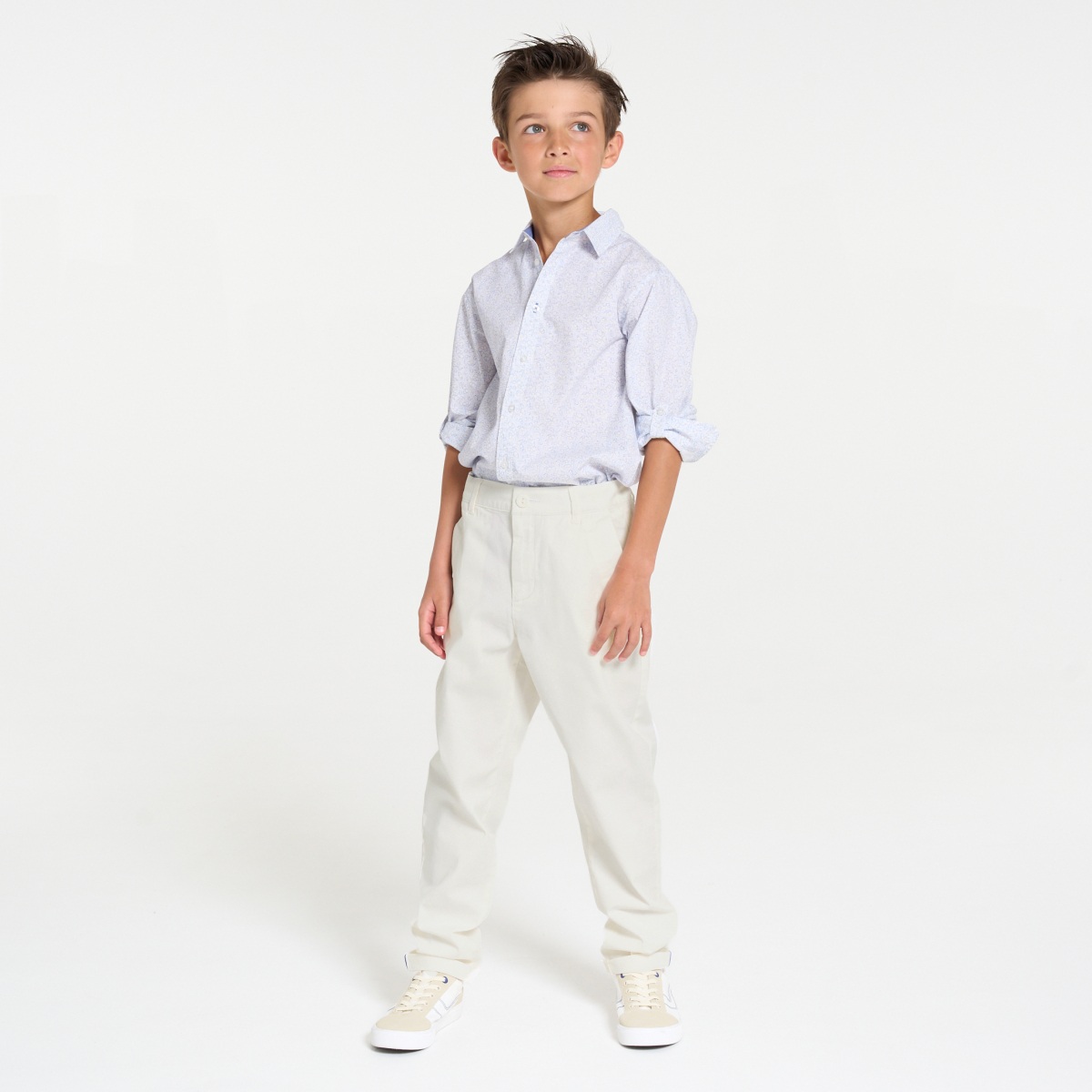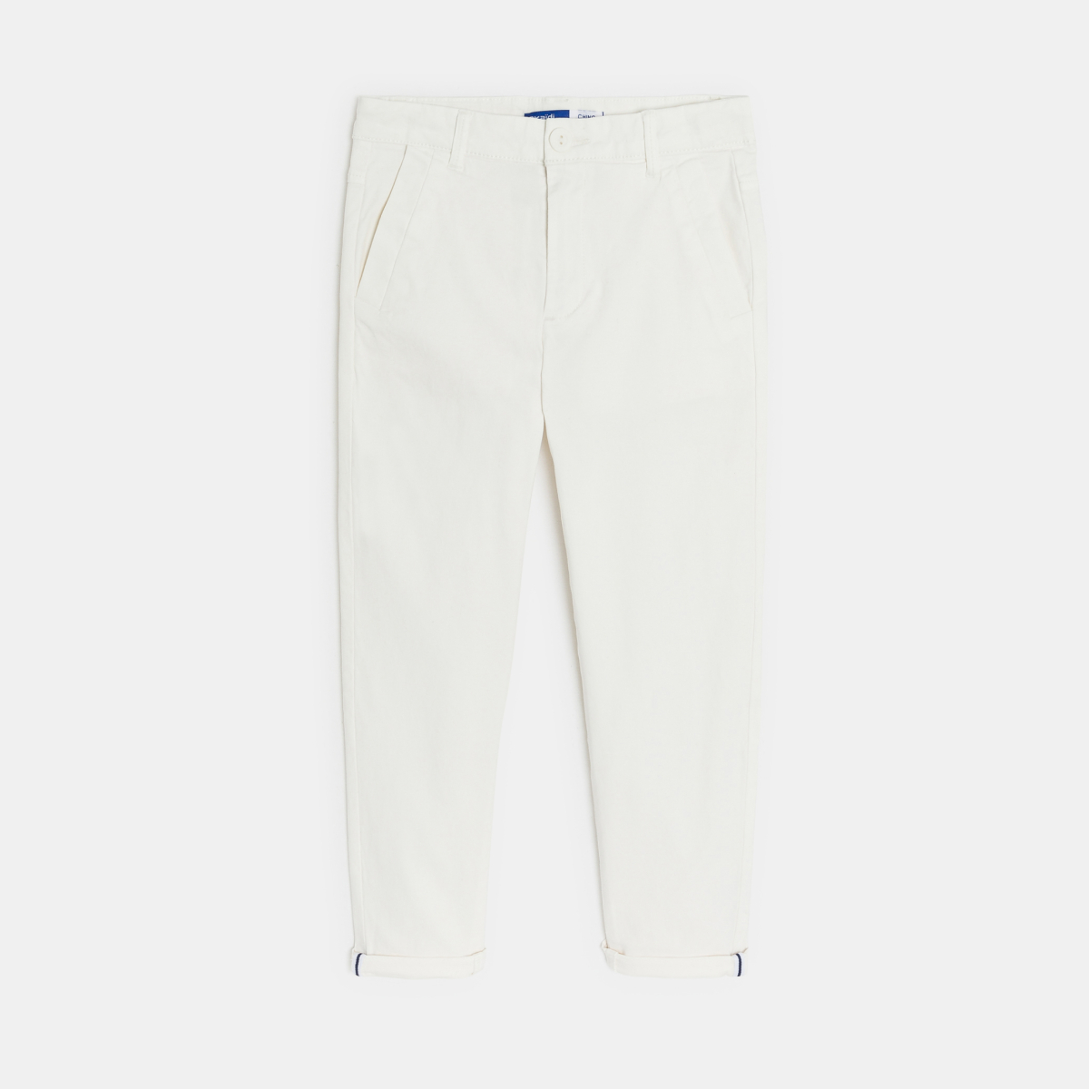 Description Ce pantalon chino en toile douce fait partie du best-of des garçons. Toujours présent quand on a envie de lui : à l’école, pour un jour J, pour une fête… Ouverture par bouton et zip. Tour de taille ajustable. 3 poches. Revers ajustables. Coutures ton sur ton.