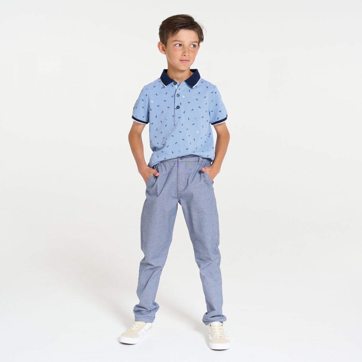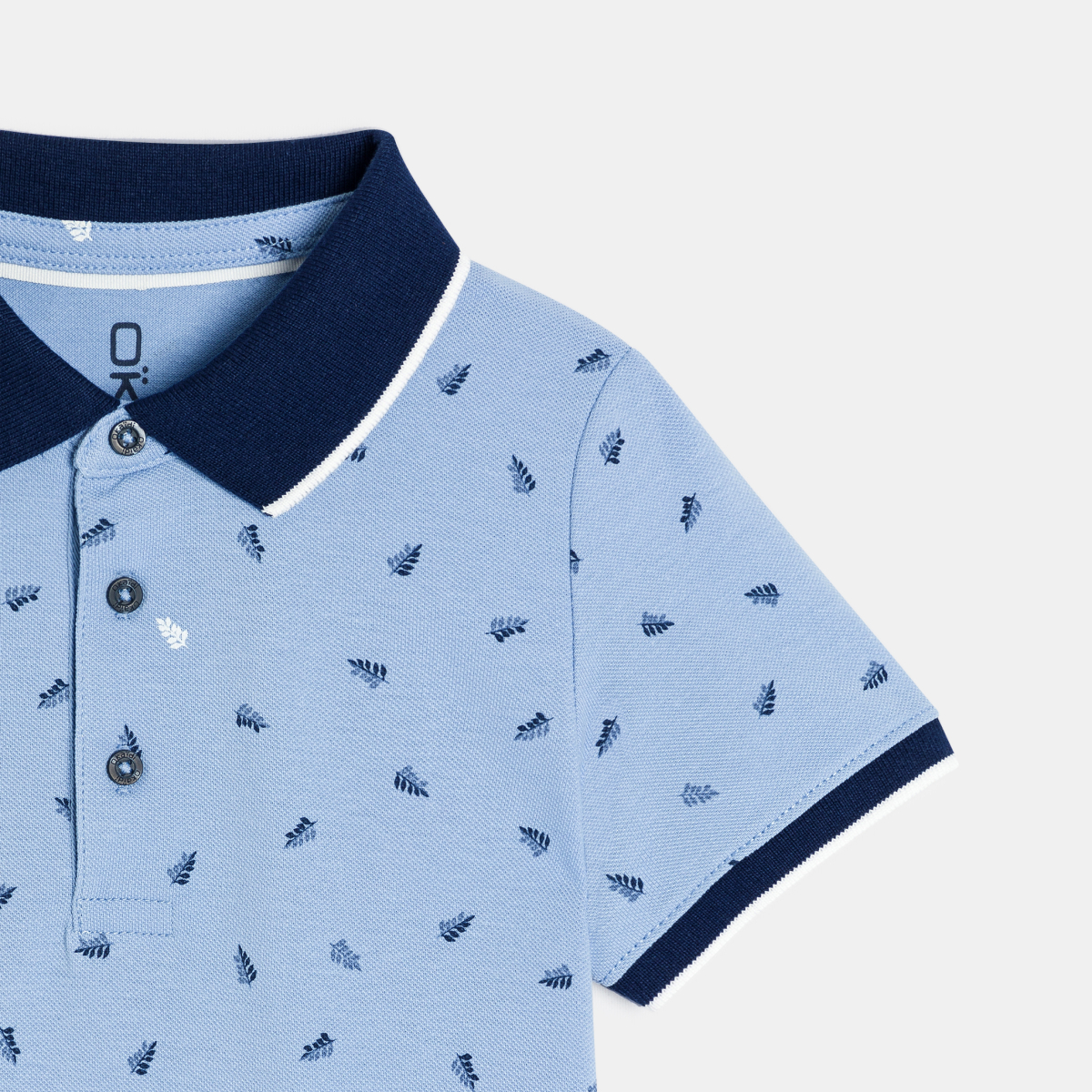 Polo manches courtes en jersey piqué imprimé bleu Garçon