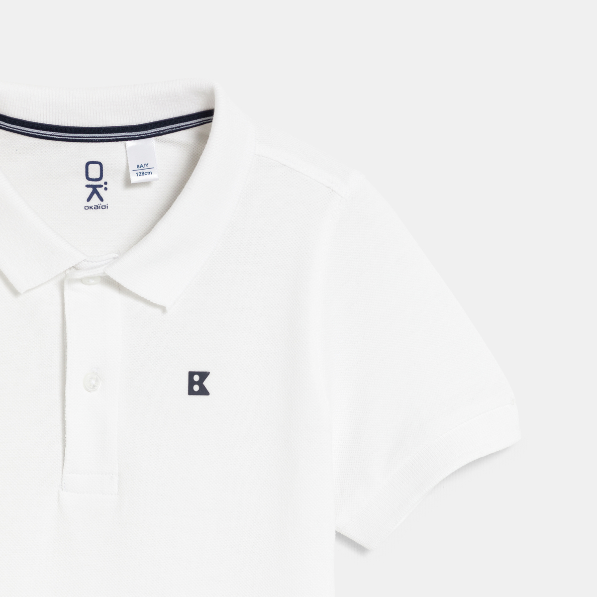 T-shirt / Polo garçon basique. Jersey de coton piqué. Coupe droite. Col polo côtelé ouverture boutonnée enfilage facile. Picto Okaïdi à lu2019encre gonflante sur la poitrine. Manches courtes bord côtelé. Base droite. Fentes côtés. Finition surpiquée.