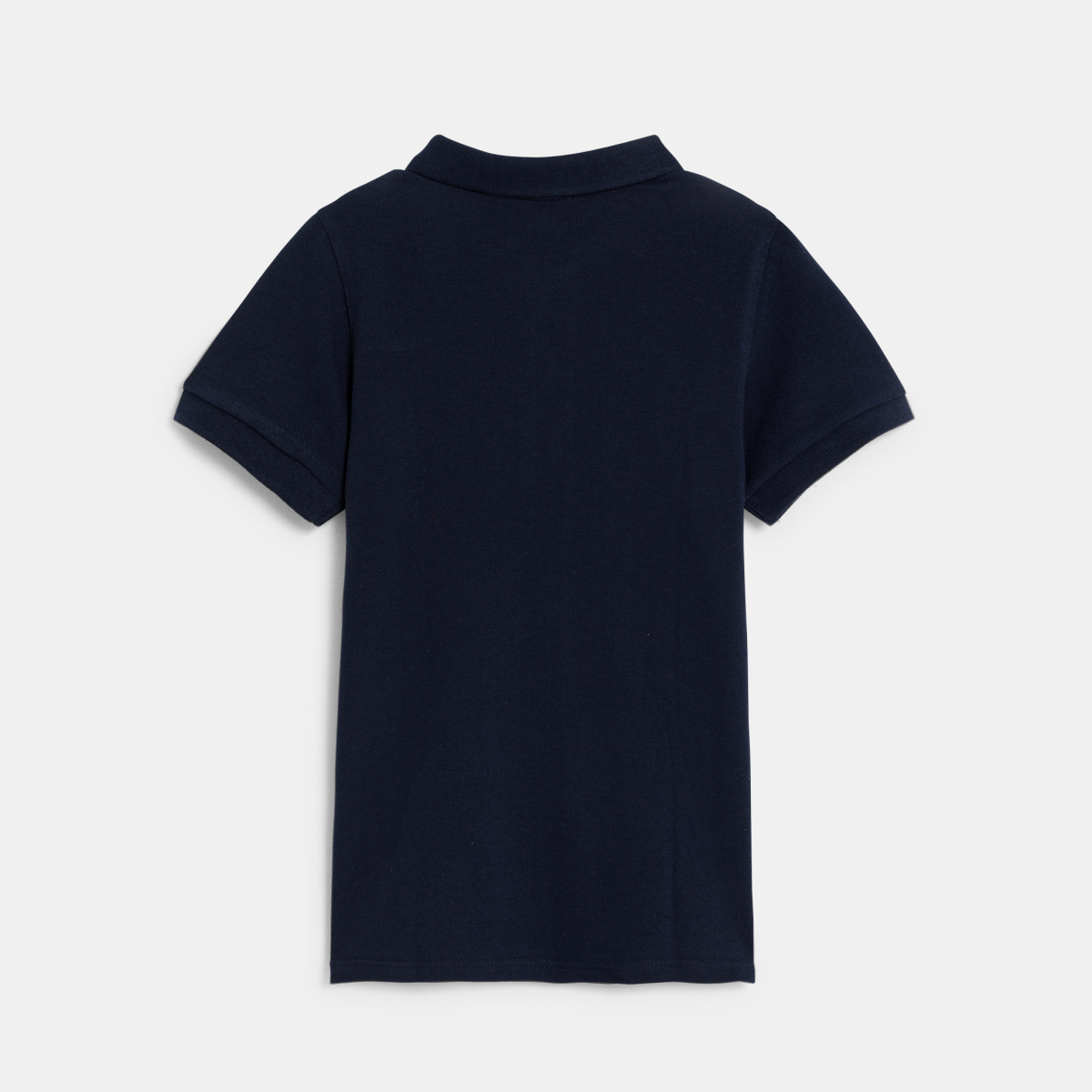 Description T-shirt / Polo Garçon. Jersey de coton piqué, légèrement extensible. Coupe droite. Col polo à revers côtelés, patte boutonnée devant, enfilage facile. Biais à l’intérieur de l’encolure en finition. Logo Okaïdi à l’encre gonflante sur la poitrine. Manches courtes, bords côtelés. Base droite légèrement plus longue dans le dos. Fentes côtés. Coutures ton sur ton.