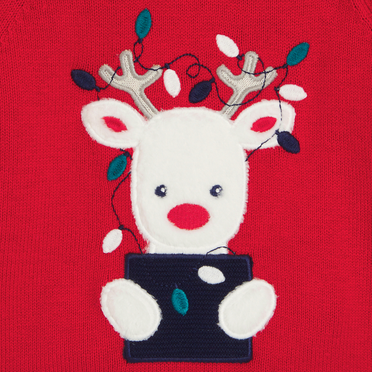 Le renne s'amuse sur ce pull indispensable en cette saison ! En maille tricot chaude et douce il réchauffe les garçons et les amuse avec son illustration en relief. Ouverture côté par boutons pour un passage de tête facile.