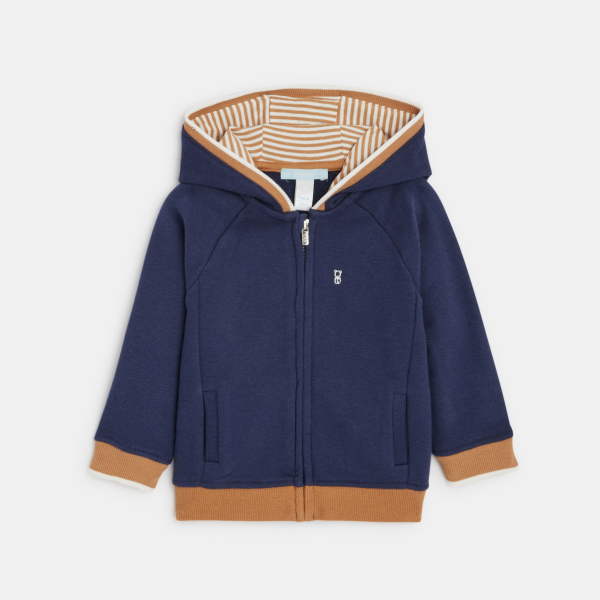 Indispensable en toute saison, le sweat zippé réchauffe les petits et anime le dressing. Capuche couvrante intérieur rayé et finitions bords côtes pour un look sportswear qui a tout bon.