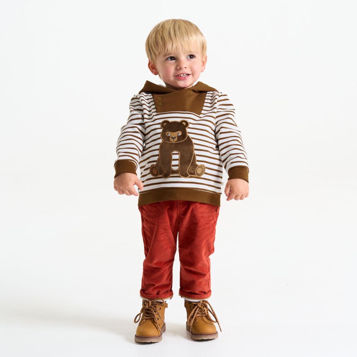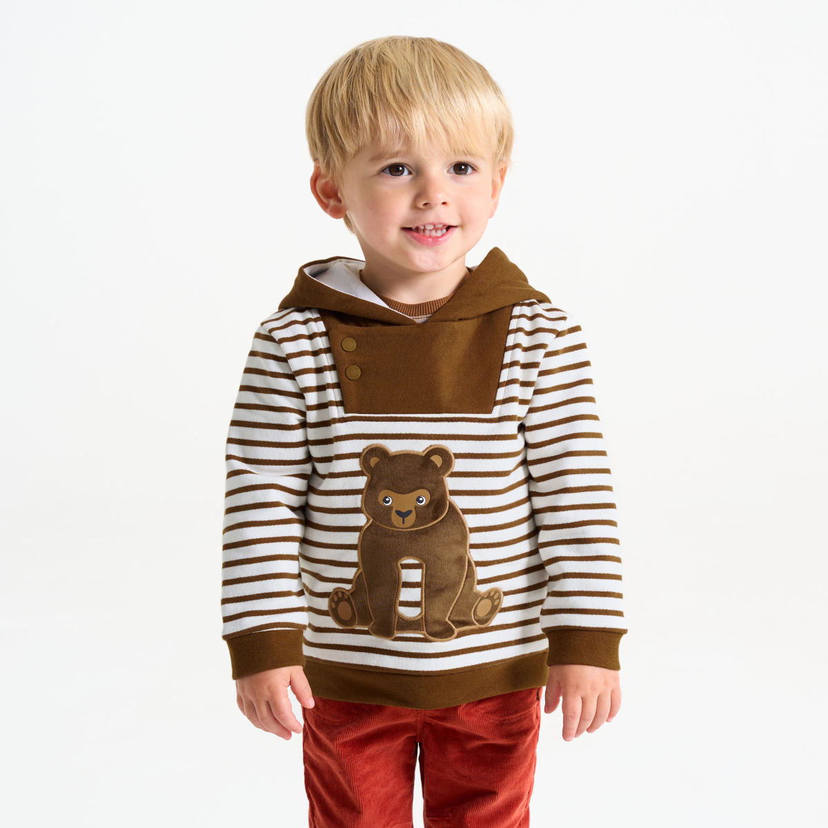 Les garçons adorent les détails de ce sweat à capuche bien chaud ! Un ours amusant, une coupe tout confort avec col pressionné sur le côté et une rayure essentielle dans le vestiaire : il a tout bon !