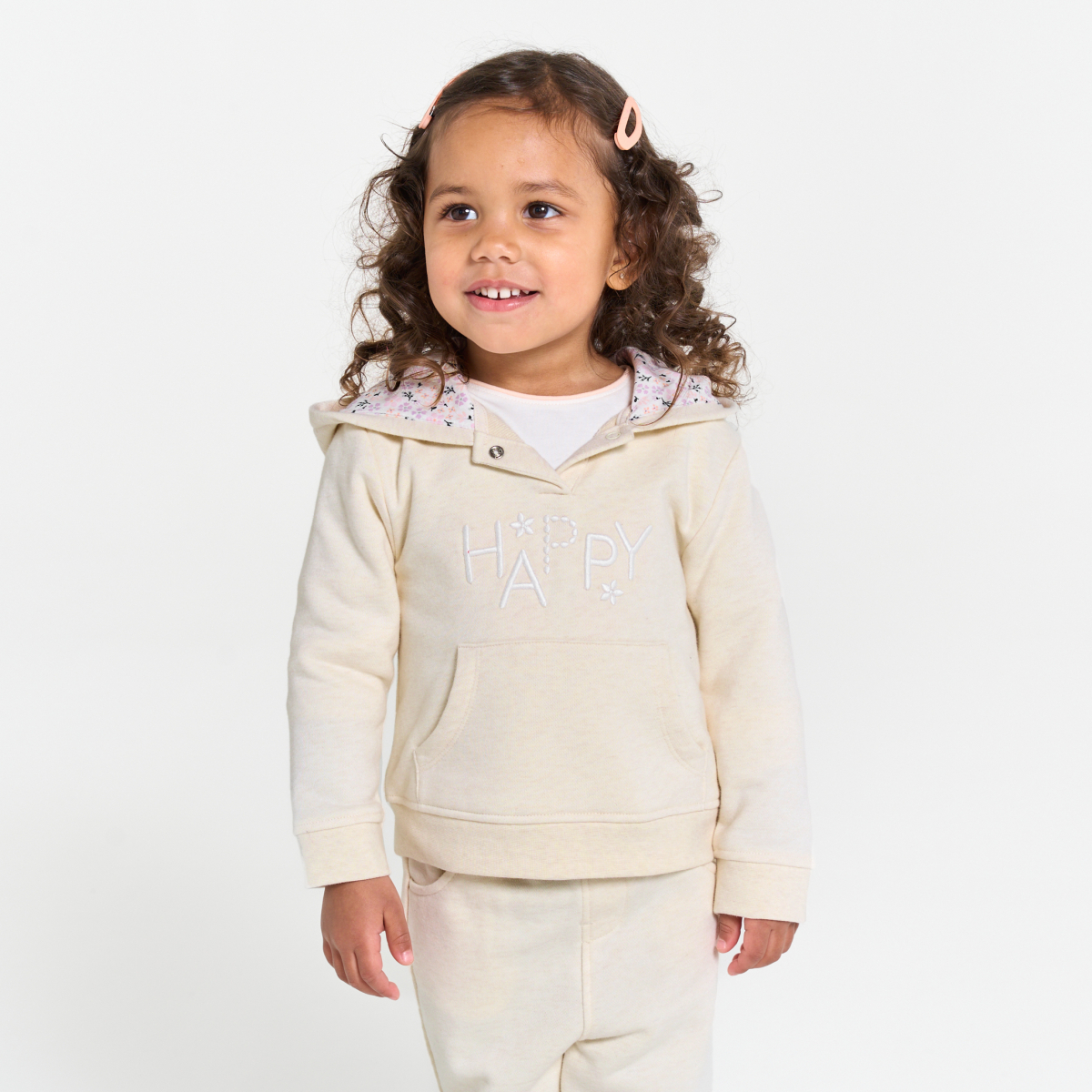 Le petit chat invite les petites à être heureuses avec ce sweat en molleton tout confort. Capuche couvrante qui protège la tête des petites en douceur. Grande poche kangourou devant. Fermeture par une pression devant pour un passage de tête facile.
