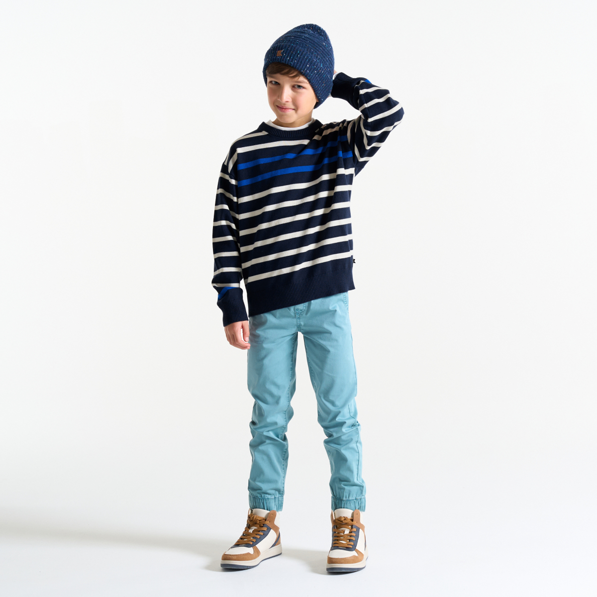 Pull marin rayé marron Garçon