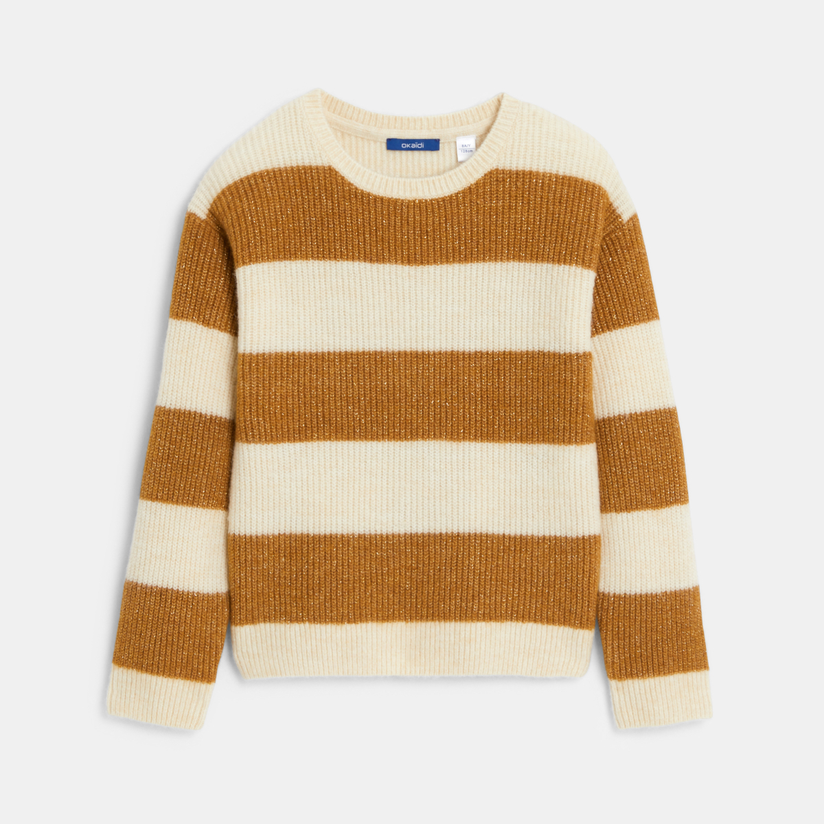 Description Allure marine et style intemporel pour le pull à larges rayures : les filles valident le look à chaque fois. Maille douce et côtelée. Rayures en jacquard. Coupe droite. Col rond. Manches longues. Base droite. Bords-côtes.n