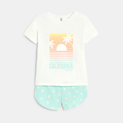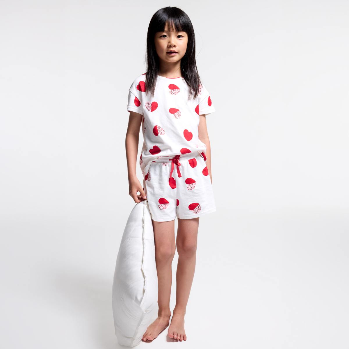 Parce que les filles sont des amours... on choisit ce pyjama-short imprimés de grands cœurs ! Confectionné en jersey il est composé de deux pièces : un t-shirt (col rond et manches courtes) et un short coordonné (taille élastiquée).