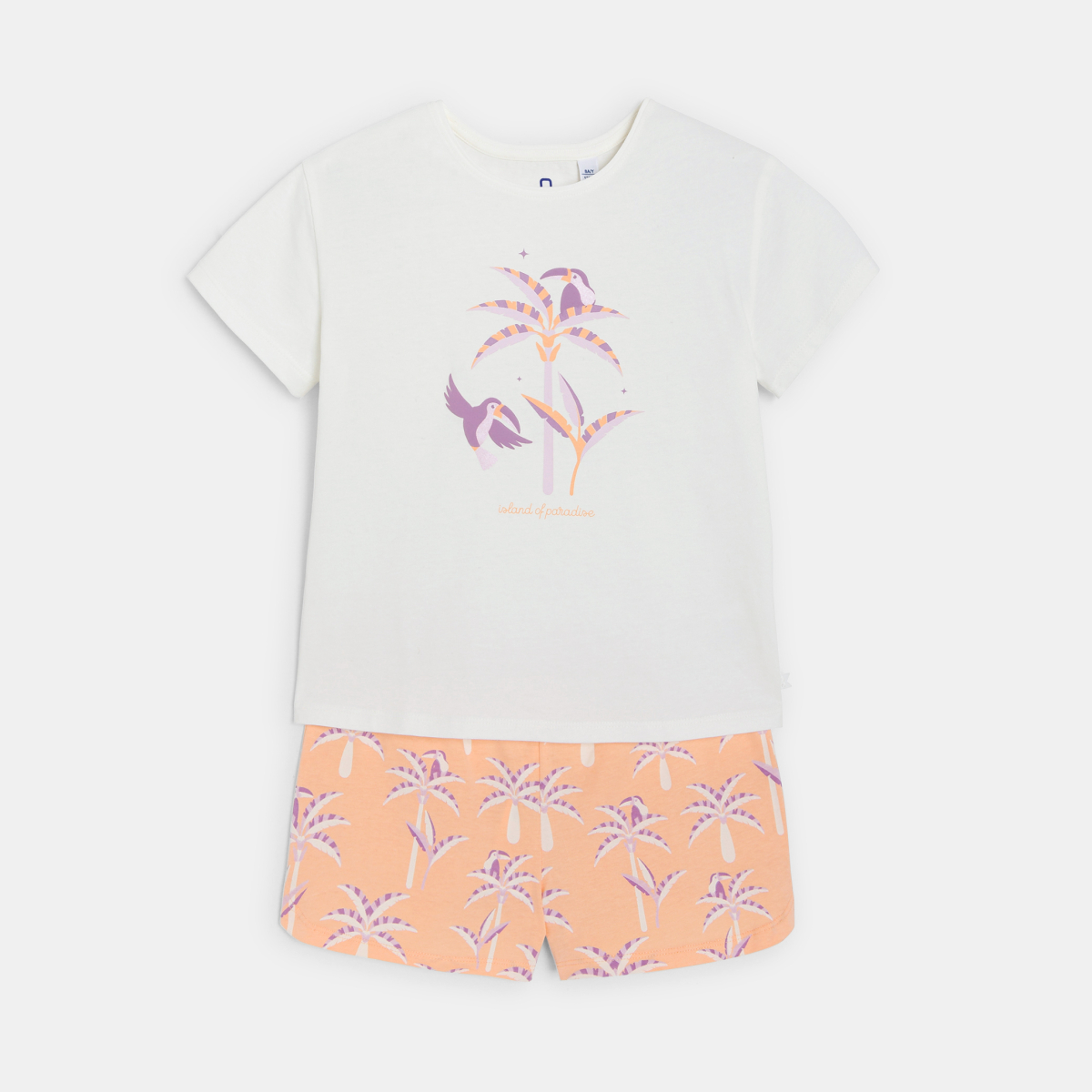 Un petit air de vacances et c'est le paradis... pour passer de douces nuits ! Ce pyjama en jersey de coton est composé de deux pièces : un t-shirt avec motifs imprimés devant (col rond et manches courtes) + un short imprimé (taille élastiquée).