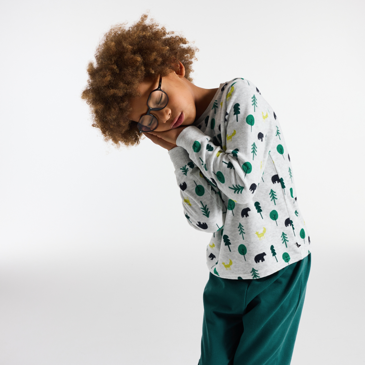 Description Avoir le sens de l’aventure, c’est bien du petit matin au réveil jusqu’au soir au coucher… Avoir besoin de douceur aussi ! Ce modèle en velours doux est composé de deux pièces : un haut imprimé (col rond, manches longues, poignets côtelés) et un pantalon uni (coupe jogging, taille élastiquée, bas de jambes côtelés).