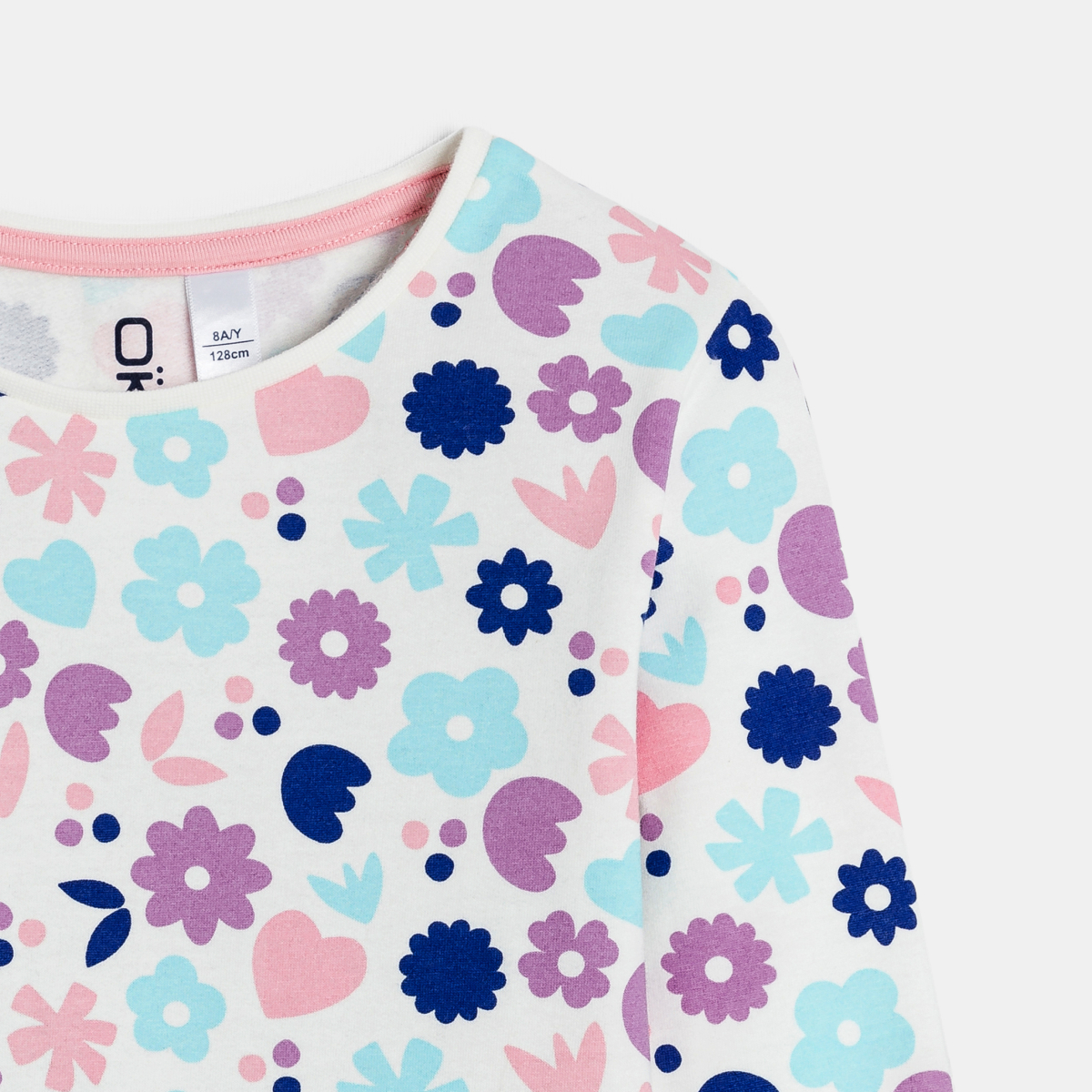 Pour des nuits douces et hautes en couleurs, les filles se glissent dans la douceur molletonnée de ce pyjama imprimé de fleurs. Ce modèle est composé de deux pièces coordonnées : un haut (coupe droite, col rond et manches longues) et un pantalon (taille élastiquée et bas de jambes côtelés).