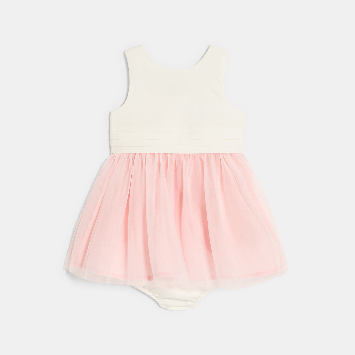 Description Les petites sont les reines de la fête dans cette robe chic ! Bi-matière avec un haut en coton ottoman fantaisie et un bas doublé effet jupon en tulle. Fermeture par zip dos. Le bloomer assorti cache joliment la couche inclus du 3 au 23 mois. Cuisses et taille élastiquées.