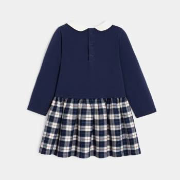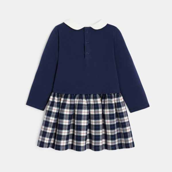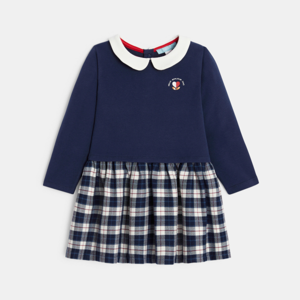 Un petit style british dans la garde-robe des filles, pour une tenue élégante qu'on aime. Robe pull effet 2 en 1 avec haut en molleton à petit col et bas à carreaux. Pressions dos pour habiller facilement les petites.