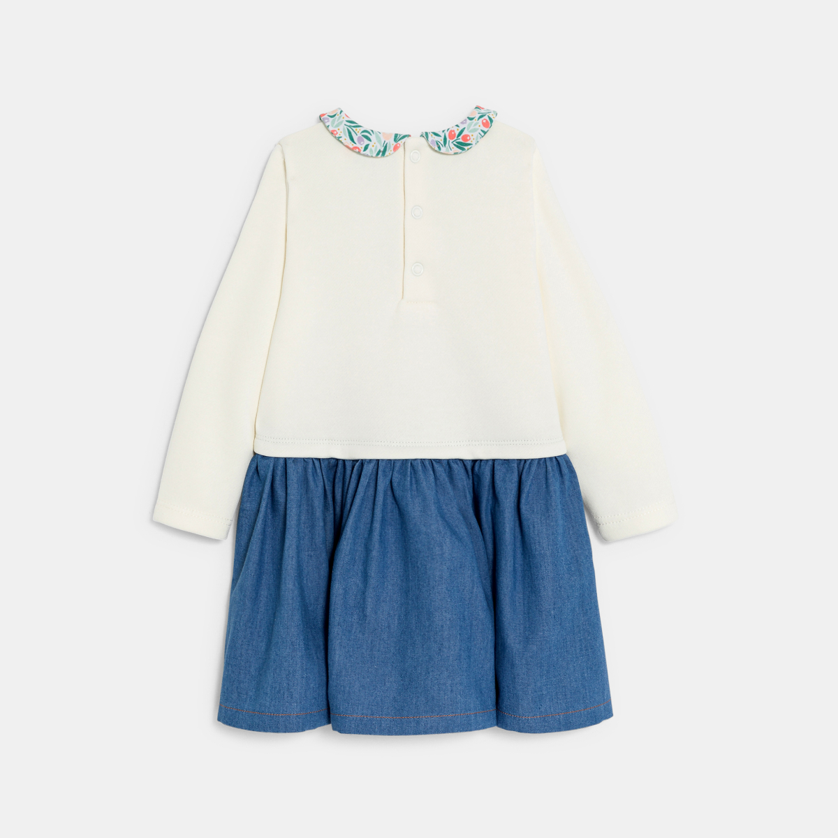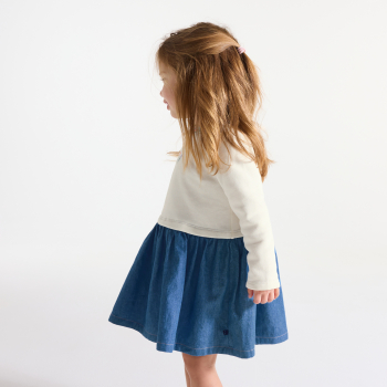 Robe 2 en 1 molleton et denim blanc bébé fille