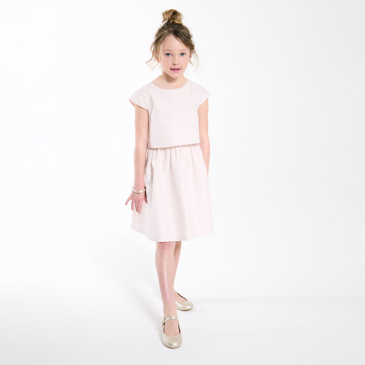 Robe chic en coton et lin irisé rose nude Fille