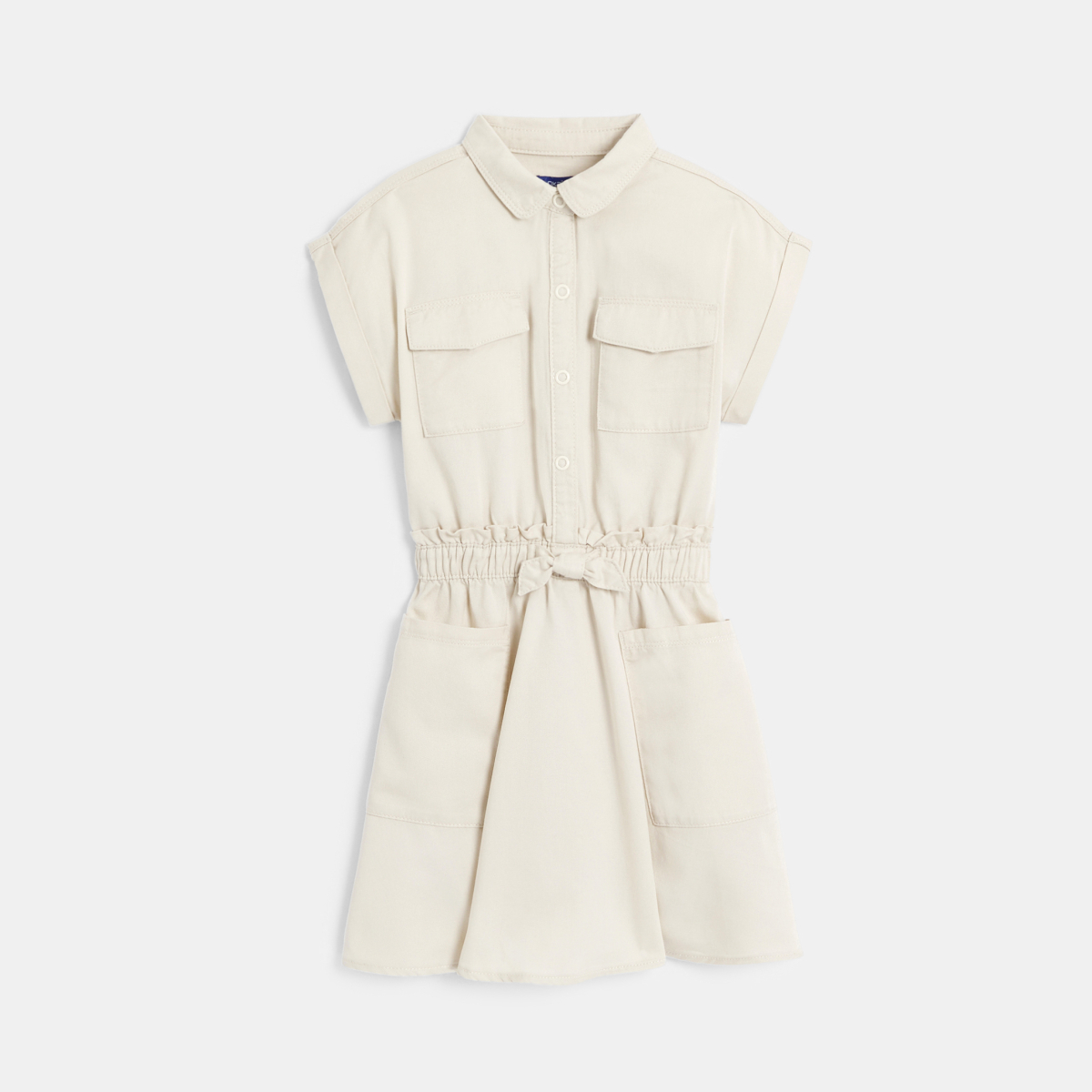 Esprit safari et envie de voyage : cette robe saharienne en coton et lyocell est une pièce-phare des looks ensoleillés ! Les filles aiment ses 2 poches poitrine à rabat et sa taille élastiquée marquée d'un nœud devant. Col chemise à bords arrondis. Ouverture boutonnée enfilage facile. Manches courtes à revers piqués. Base droite.n