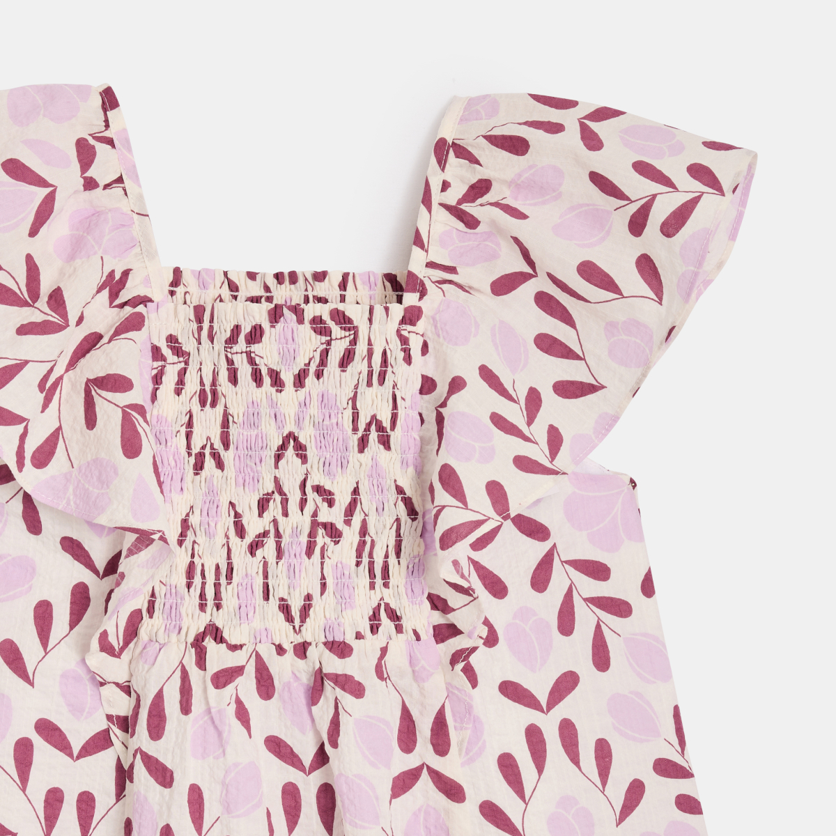 La robe à smocks fait partie des pièces favorites des filles depuis toujours et pour longtemps ! Tissu légèrement gaufré agréable à porter. Coupe évasée. Mancherons volantés. Col carré devant et dos. Doublure en voile de coton. Longueur au-dessus du genou.