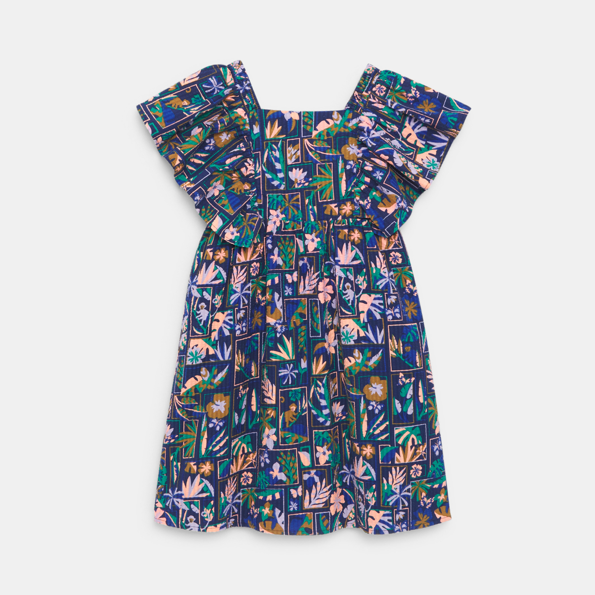 Description Douceur légèreté originalité : les filles prennent le chemin des beaux jours avec cette robe courte imprimée. Tissu doux gaufré. Motifs imprimés all over. Coupe légèrement évasée. Col carré smocké devant et dos. Mancherons volantés et élastiqués sur les épaules. Base arrondie. Finition piquée. Longueur au-dessus du genou.