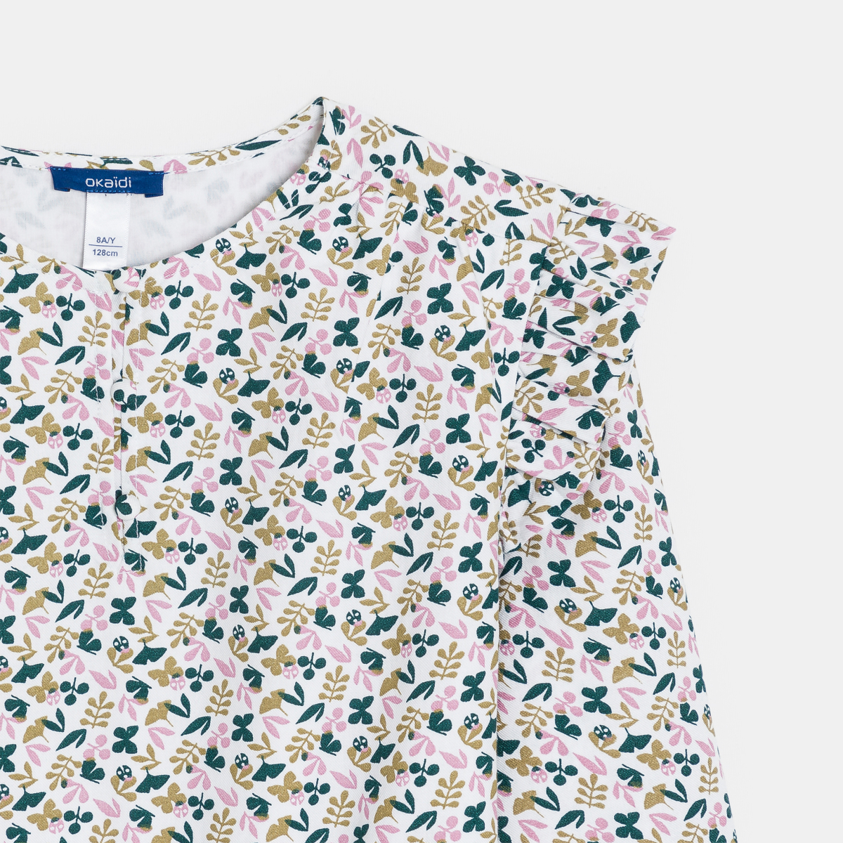 Place aux motifs répétitifs super charmants ! Toile douce motifs imprimés all over. Coupe droite ceinture-ruban à nouer (amovible). Volants sur les épaules. Col rond semi-ouverture boutonnée devant enfilage facile. Manches longues poignets marqués. Finition piquée.