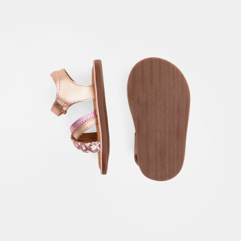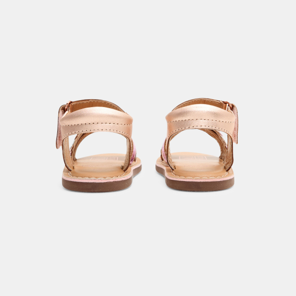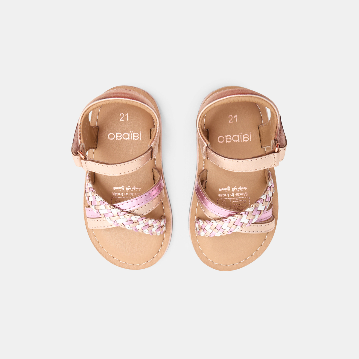 Description On adore le jeu de couleurs de ces sandales en cuir tressé. Une touche brillante aux pieds des filles qui assurent leurs pas avec ces chaussures ouvertes en cuir. Fermeture par scratch pour s'adapter à tous les petits pieds.