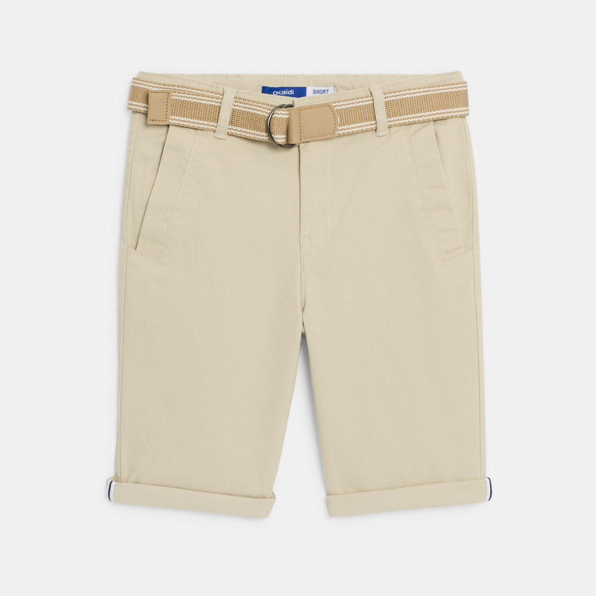 Ce bermuda en toile est présent partout et super souvent ! Les garçons le portent avec ou sans sa ceinture-sangle (réglable et amovible) en chemise t-shirt ou polo. Coupe chino. Ouverture par bouton et zip. Tour de taille ajustable. 2 poches. Revers ajustables.