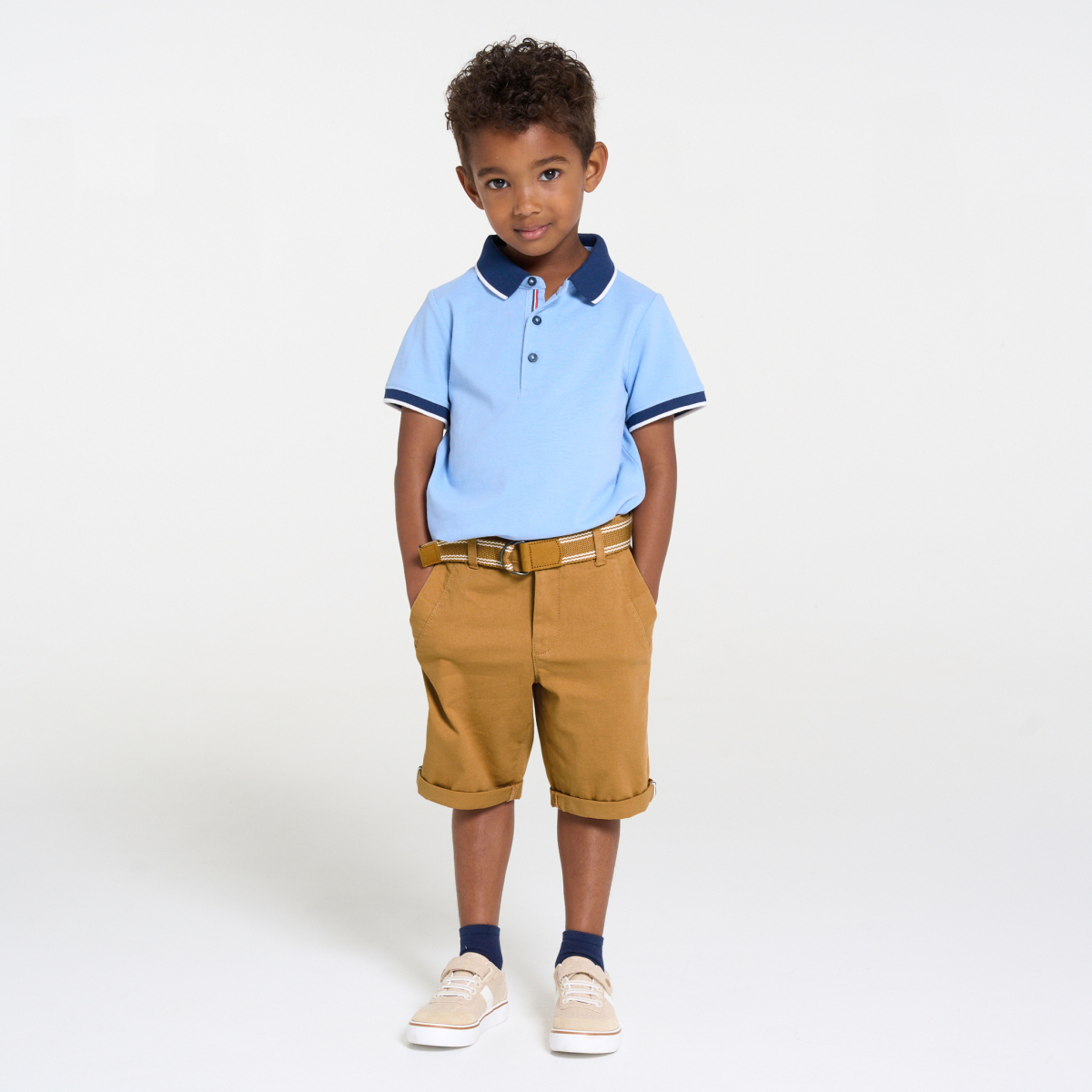 Ce bermuda en toile est présent partout et super souvent ! Les garçons le portent avec ou sans sa ceinture-sangle (réglable et amovible), en chemise, t-shirt ou polo. Coupe chino. Ouverture par bouton et zip. Tour de taille ajustable. 2 poches. Revers ajustables.