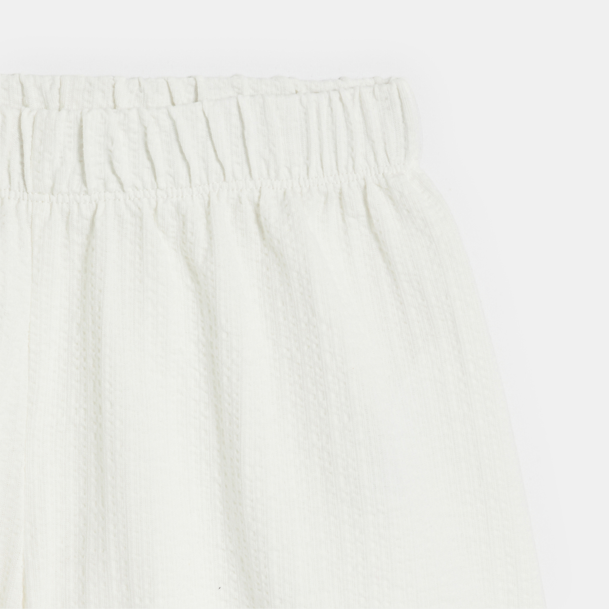 Détail broderie anglaise et maille reliefée : ce short blanc est aussi raffiné que confort. Jersey doux, légèrement extensible. Taille élastiquée. Tour de taille ajustable. Bas de jambes festonnés. Coutures ton sur ton.