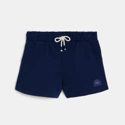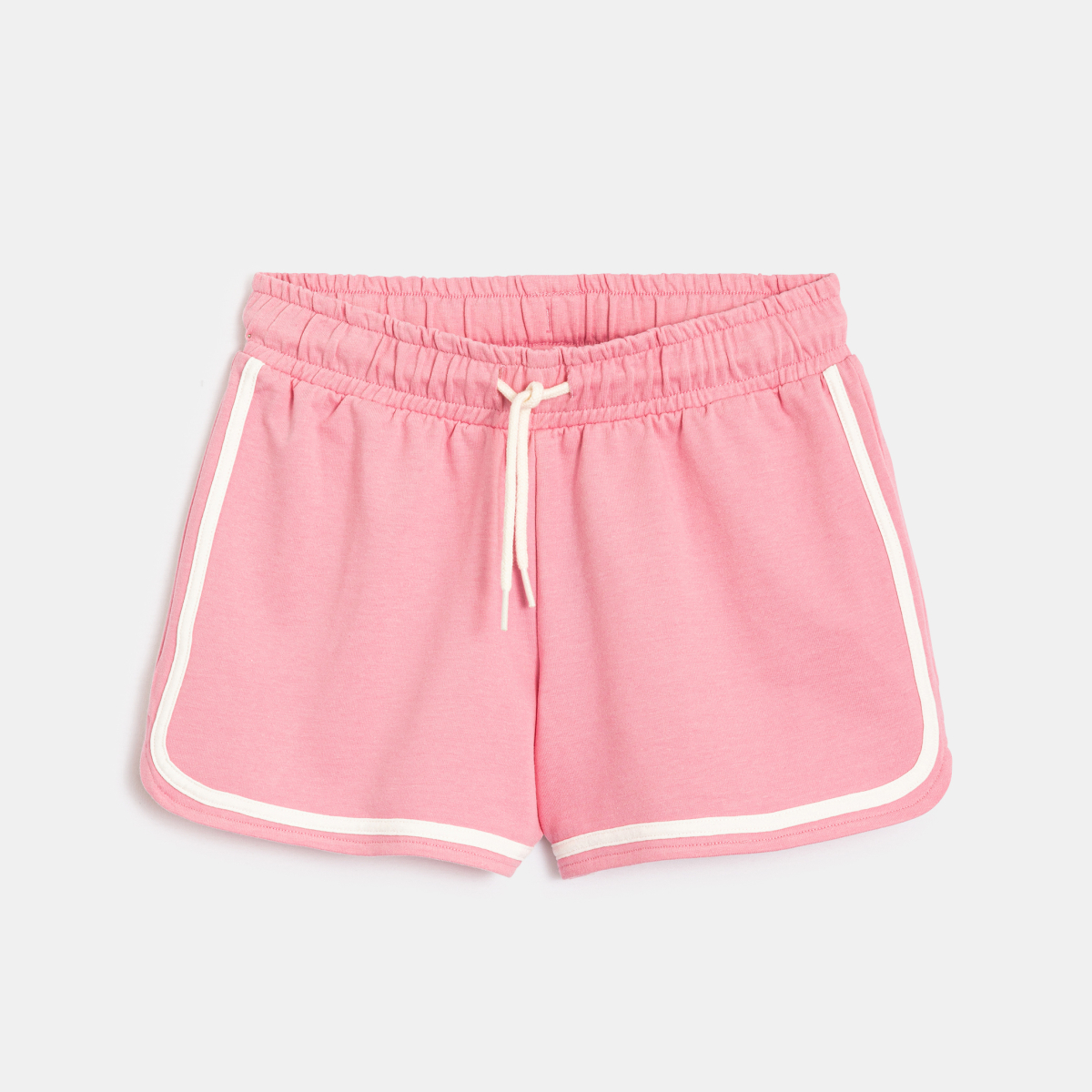 Sport. Farniente. Vacances au soleil. Les filles aiment toutes le confort doux de ce short esprit sportswear américain ! Taille élastiquée ajustable, cordon à nouer. Biais contrasté en détail. Coutures ton sur ton.