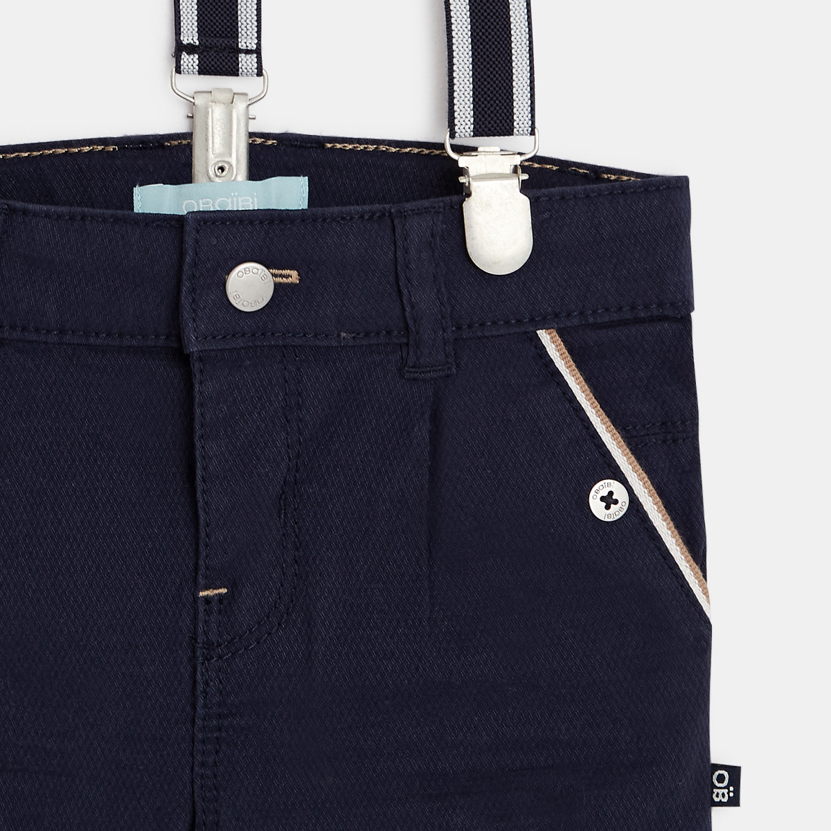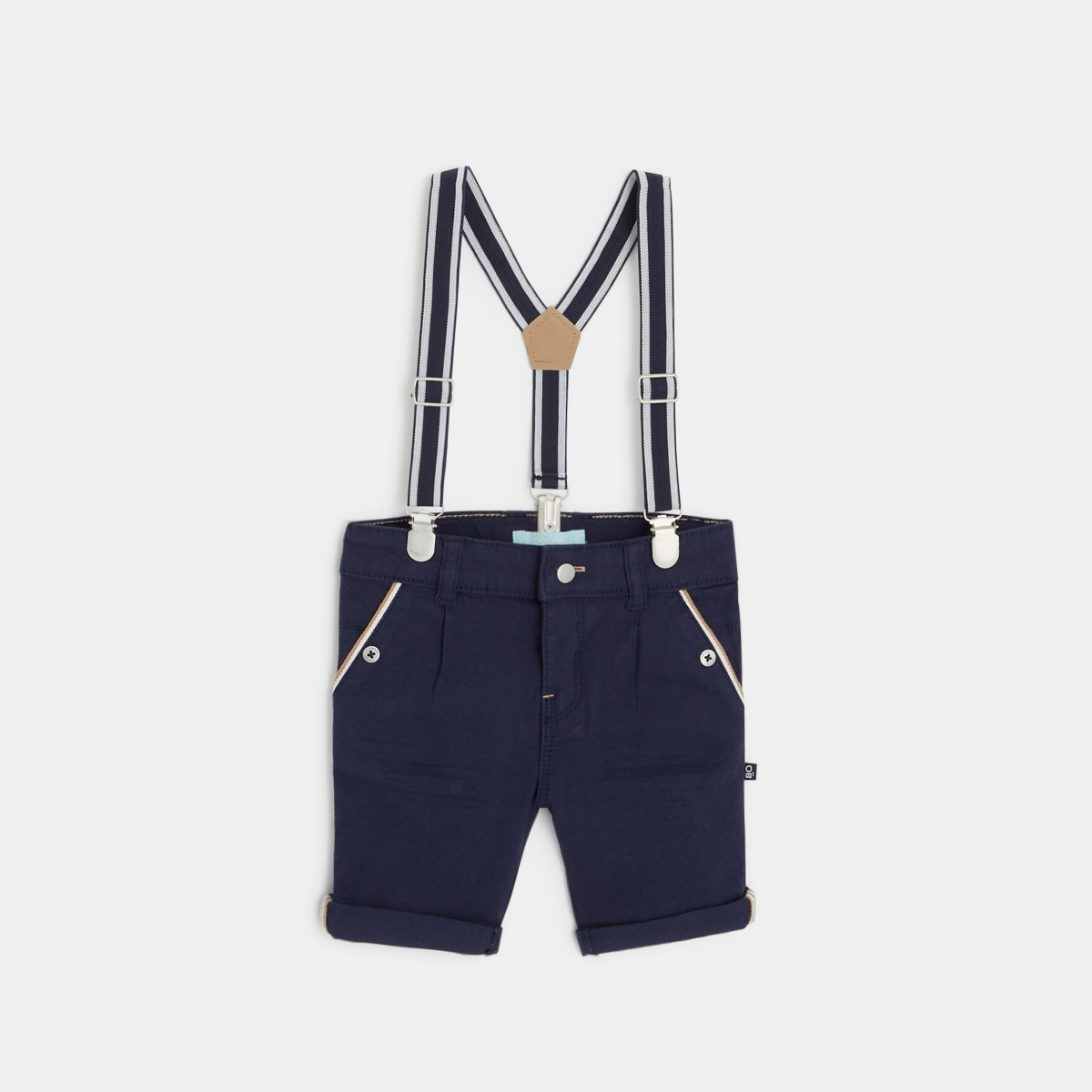 Bermuda à pinces en coton fantaisie et bretelles bleu bébé garçon