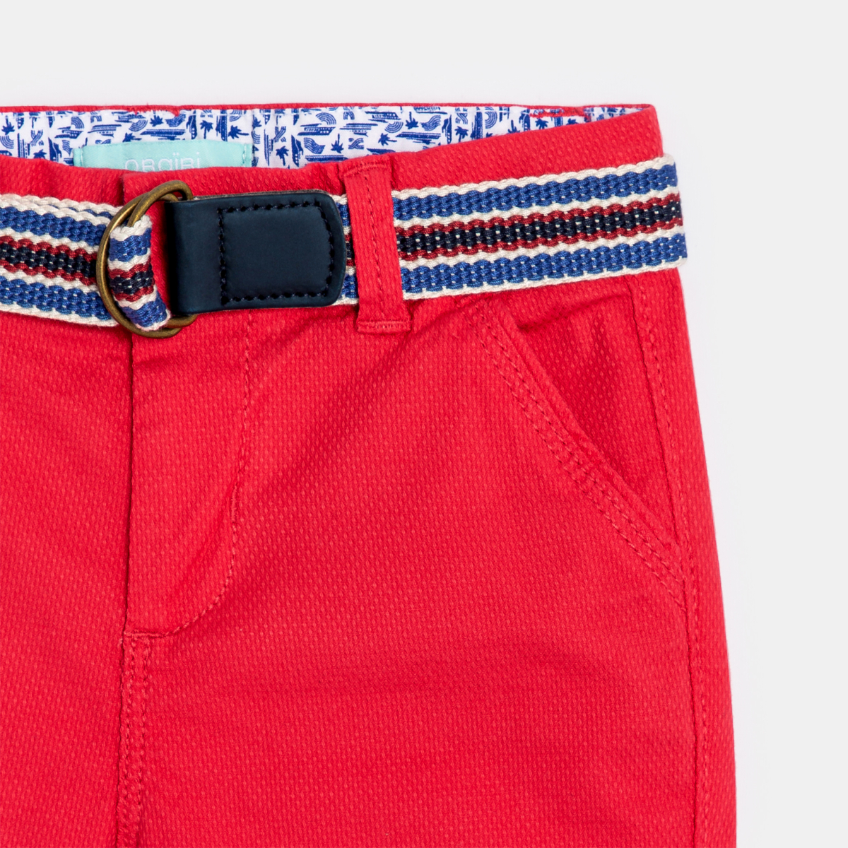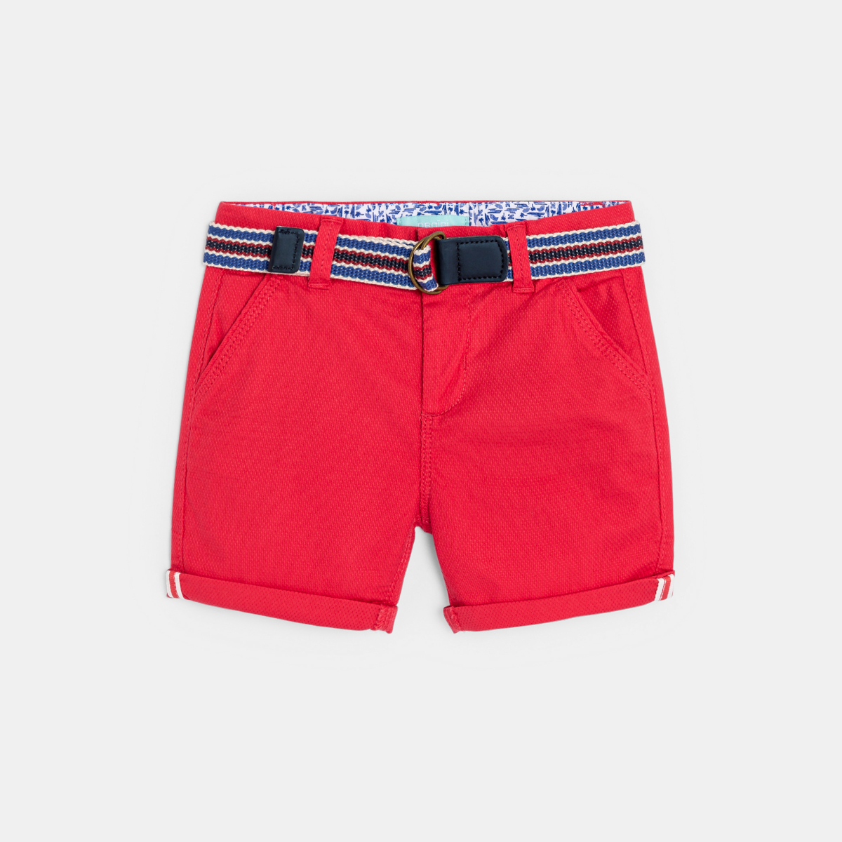 Description Un style chino indispensable dans le vestiaire des garçons et un coton fantaisie souple très agréable à porter : on adore ce bermuda élégant ! Ceinture tressée réglable.