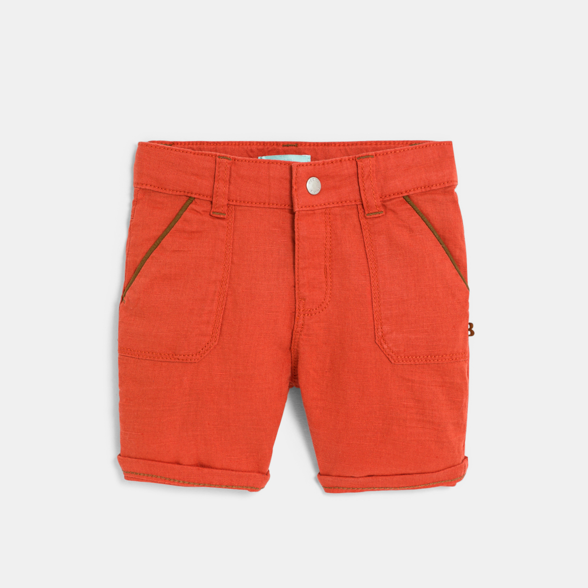 Description Une touche colorée qui fait toute la différence dans le vestiaire des garçons avec ce short à la coupe droite. En coton confortable effet lin il se porte selon les envies avec un tee-shirt au quotidien ou une chemise pour un évènement chic. Taille ajustable par boutons.