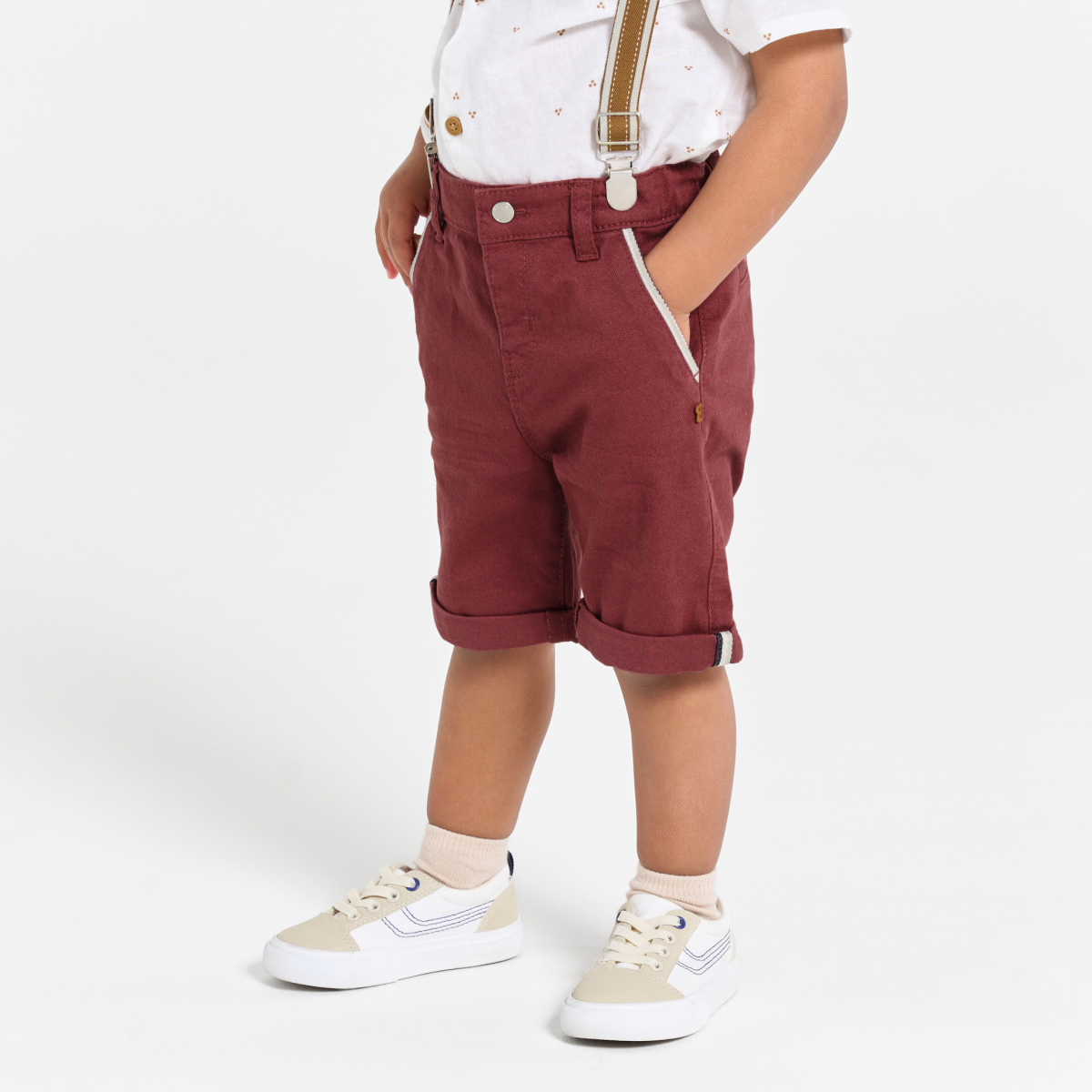 Esprit chic pour ce bermuda à revers en coton fantaisie. Les garçons le portent avec ou sans ses bretelles amovibles. Taille ajustable.
