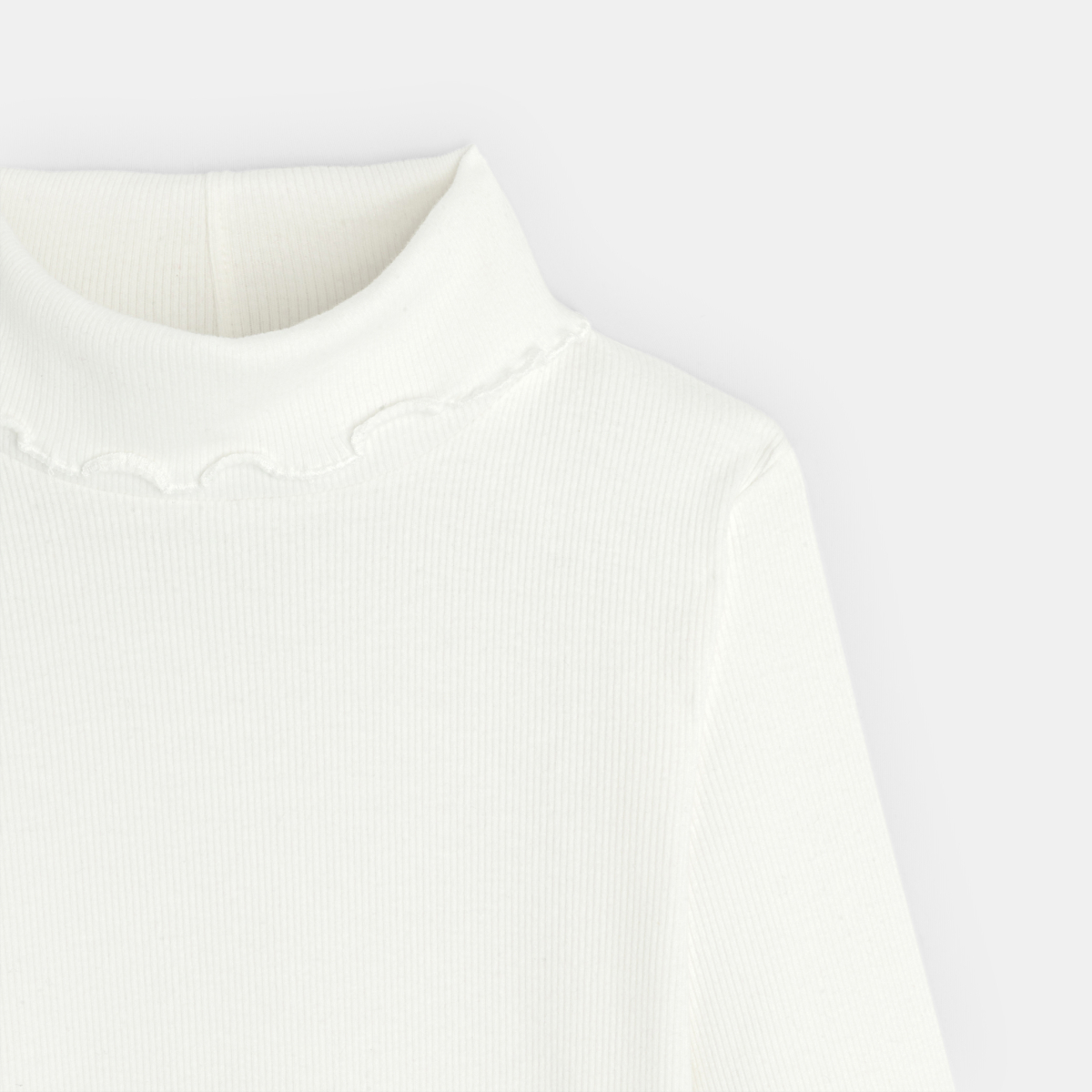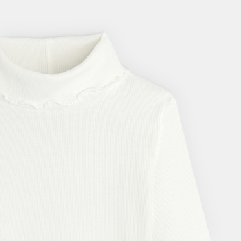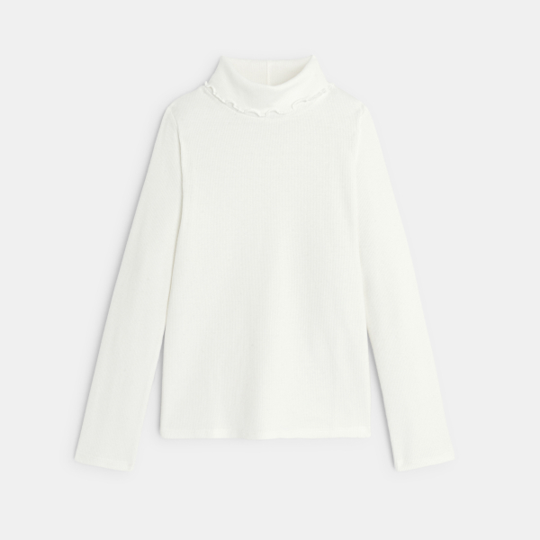 T-shirt col roulé côtelé uni blanc