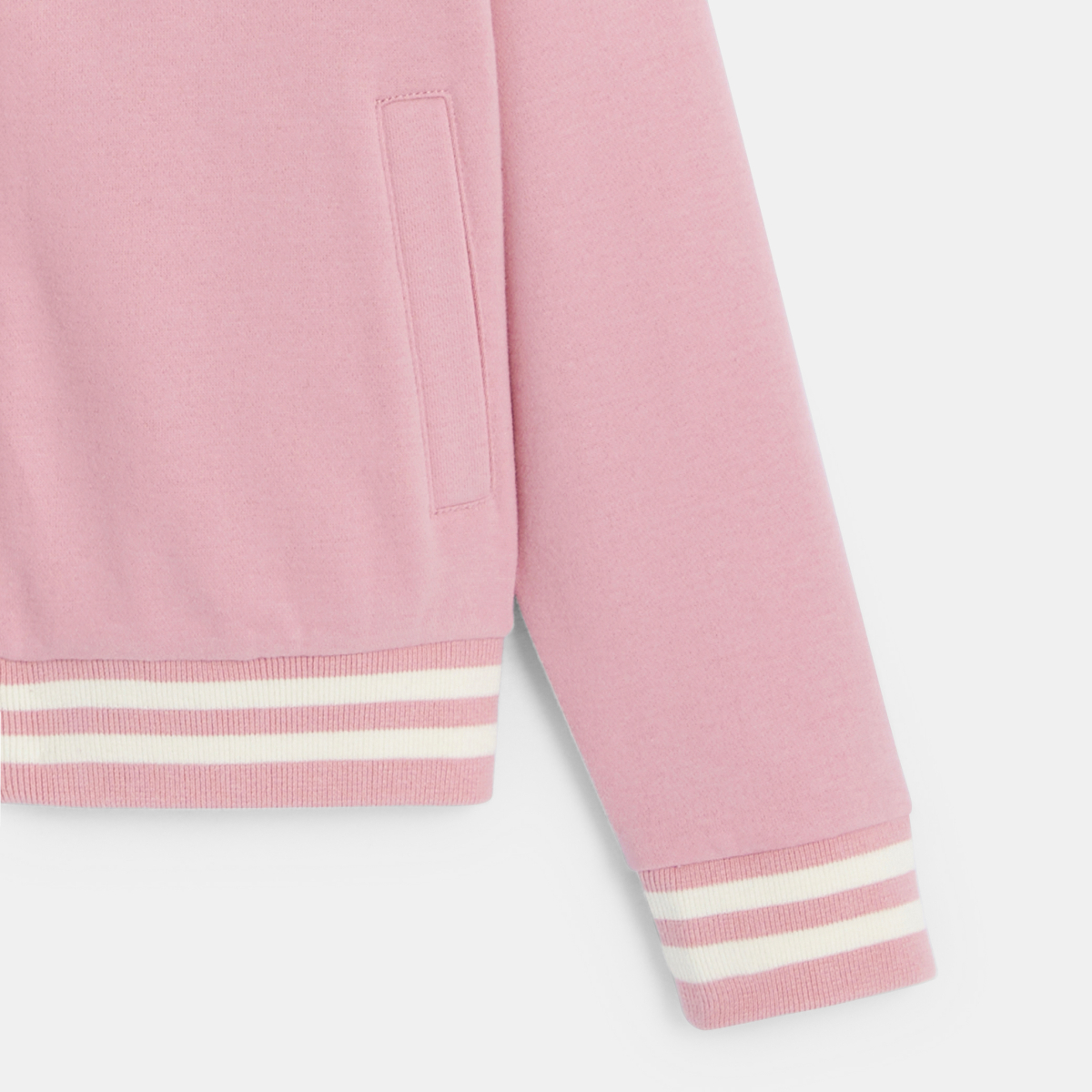 Un intérieur tout doux et bien chaud. Un style campus super tendance. Les filles disent un grand oui au teddy en molleton ! Écusson OK sur la poitrine. Col rond. Ouverture zippée. Emmanchures descendues. 2 poches. Manches longues. Base droite et poignets côtelés rayés. Étiquette d’identité.